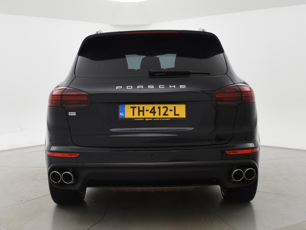 Platinum Edition, 3.0 S E-HYBRID met een 3.0 V6 Turbomotor i.c.m. elektromotor met een gecombineerd vermogen van 416 PK met 8-traps automaat en vierwielaandrijving, Adaptive cruise control, Rondom zicht camerasysteem, Soft close sluitbekrachtiging portieren, Alarm klasse 3 + 5 met voertuigvolgsysteem, Luchtvering met regelbare rijhoogte en elektronisch regelbare schokdempers, Panorama schuif/kanteldak, Lederen sportstoelen met 18-voudige verstelling/breedte regeling etc, Apple Carplay Appstreaming Google Maps, Spotify, Flitsmeister etc, Achteruitrijcamera, Bose premium sound, Elektrische stoelverstelling met geheugen, LED koplamen, LED achterlichten, Dodehoek detectie, Leder dashboard, Stoelverwarming voor + achterin, Keyless-drive, Privacy glass, Tiefschwarz metallic lak, Porsche dealer onderhouden.