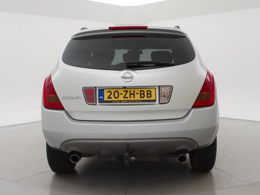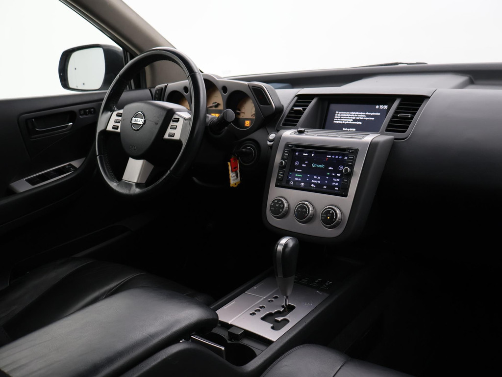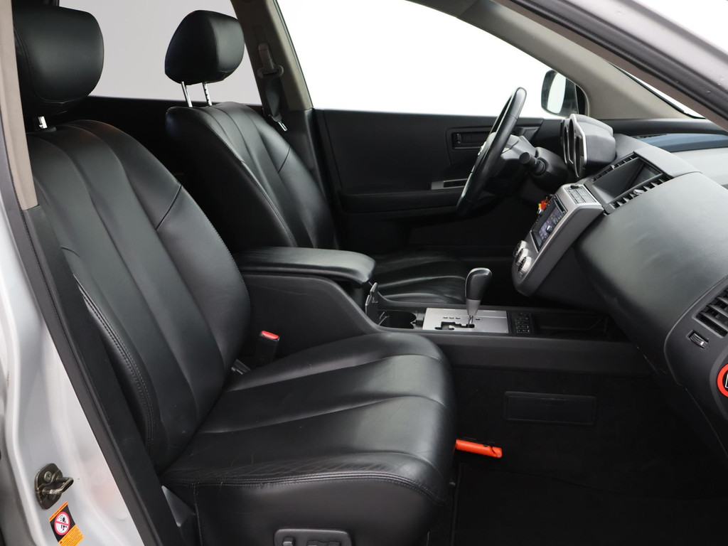 BTW auto, prijs is inclusief BTW, Youngtimer Nissan Murano van 2008 met de 3.5 V6 benzinemotor met 234 PK 4WD Automaat, Zwart leder interieur, Navigatie, Trekhaak afneembaar, Elektrische stoelverstelling met geheugen, Achteruitrijcamera, Bluetooth, Dubbele uitlaat, Privacy glass, Cruise control.