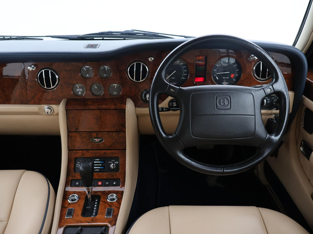 Bentley Turbo R 6.75 V8 Turbo, Donkerblauw met beige leder, Rechtsgestuurd, Elektrische stoelverstelling met geheugen, Automatische airconditioning, Houtinleg dashboard, Stoelverwarming met 2 standen.