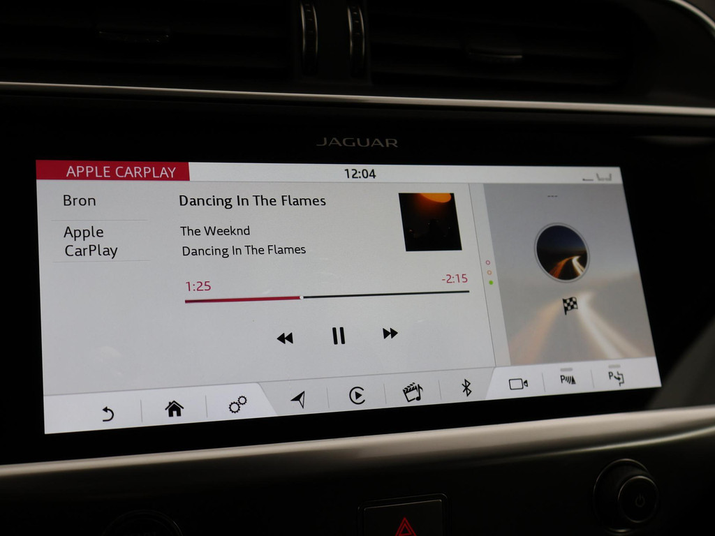 Origineel Nederlandse auto van 12-2018, BTW auto, BTW verrekenbaar, 90 kWh 400 PK automaat, Jaguar dealer onderhouden, Zwart met zwart leder interieur, Elektrische stoelverstelling met geheugen, Digitale cockpit met verschillende thema's en beeldvullende navigatiekaartmodus, Meridian premium sound, 360 graden surround view camerasysteem, Stoelverwarming en stuurwielverwarming, Apple Carplay appstreaming Google Maps, Flitsmeister, Whatsapp, Spotify etc, Botspreventiel, Lijnassistentie, Adaptive cruise control, Climate control, Bluetooth, Elektrische achterklep, Full LED koplampen, LED achterlichten.