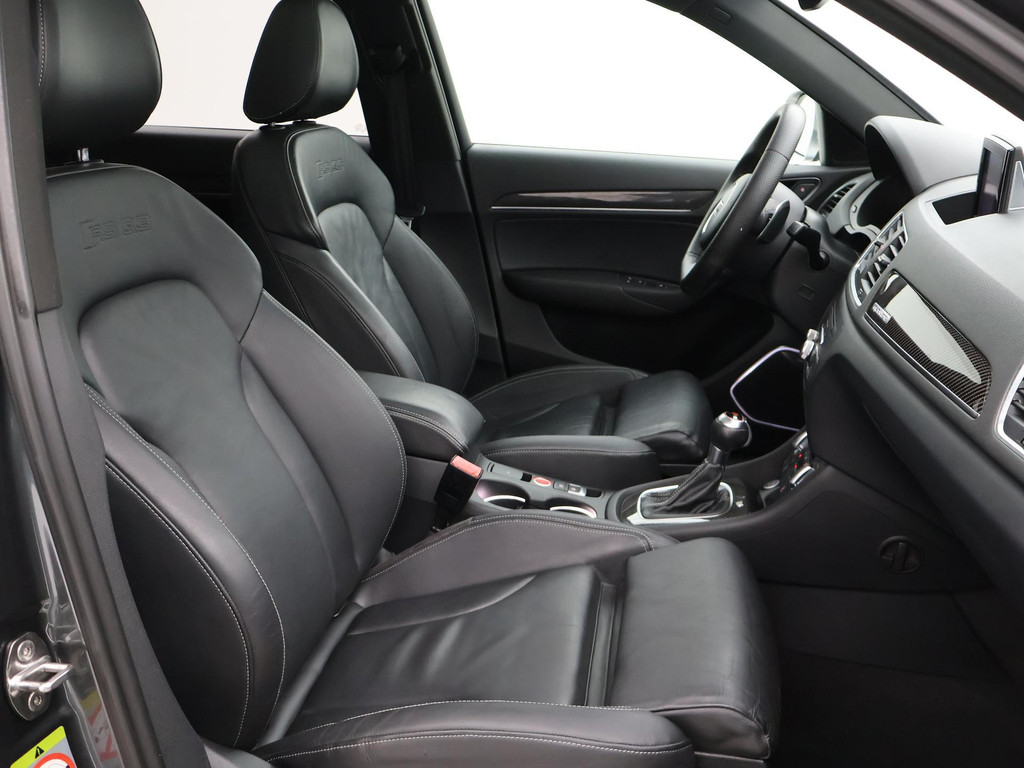 RS Q3 2.5 TFSI 310 PK Quattro automaat met 7 versnellingen, Daytona grijs metallic, 20 inch lichtmetalen velgen, Bose speakers met verlichte speakerranden, Zwart volledig leder sportinterieur met stoelverwarming en elektrische stoelverstelling, Panorama schuif/kanteldak, LED dagrijverlichting en Xenon koplampen, DAB+ Digitale radio, Navigatie, Privacy glass, Bluetooth telefoon + audiostreaming, Zwarte hemelbekleding, Zwarte remklauwen, Flat bottom sportstuurwiel, Aluminium pedalen, Parkeersensoren voor + achter, Elektronisch kinderslot, Elektrisch inklapbare buitenspiegels, Dimlichten automatisch, LED achterlichten, Carbon dashboard inleg. In 05-2022 een automaat revisie gehad met o.a. nieuwe koppeling factuur van 2480 euro aanwezig.