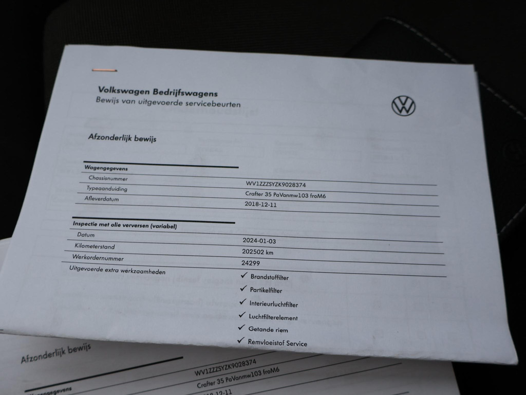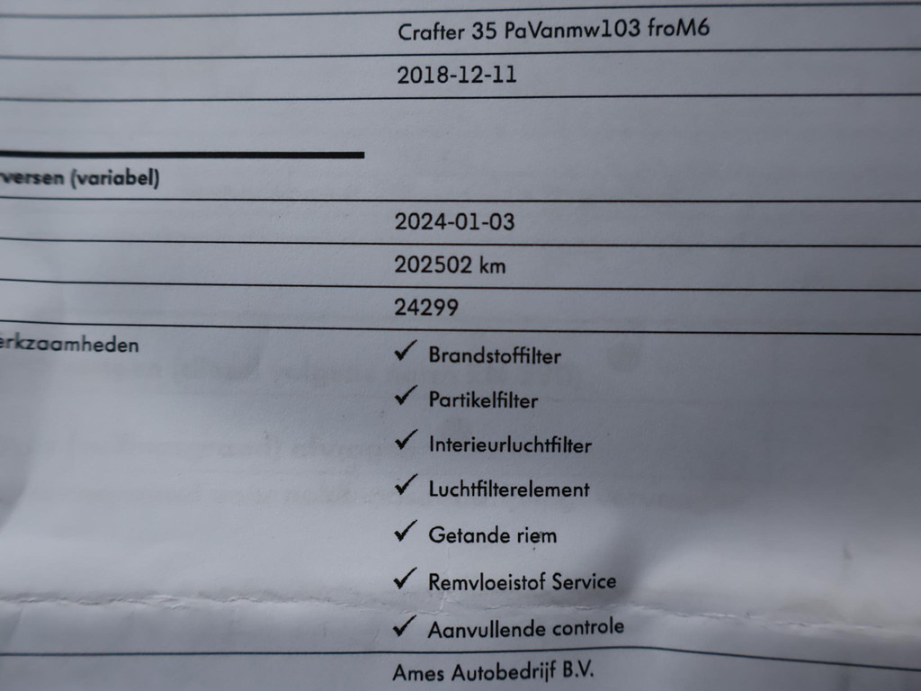 Crafter L3H3 2.0 TDI 140 PK met 6 versnellingen, 35 uitvoering met maximaal eigen gewicht 3500 kg en 3000 kg trekgewicht op kenteken, Volledig Volkswagen dealer onderhouden, historie aanwezig, Trekhaak, Lederen bestuurdersstoel met stoelverwarming, Navigatie, Apple Carplay / Android Auto appstreaming Google Maps, Flitsmeister, Whatsapp, Spotify etc, DAB+ digitale radio, Houten vloer, wandaftimmering laadruimte, Airco, 333 cm laadlengte, 177 cm breedte en 196 cm hoogte. Prijs is exclusief BTW.