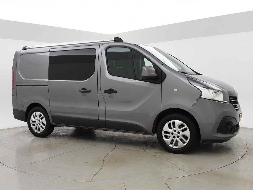 Enkel cabine Trafic 1.6 DCI 140 PK in het donkergrijs metallic met 17 inch lichtmetalen velgen, Touch-screen radio, Achteruitrijcamera, Bluetooth met audiostreaming, Cruise control, Airco, Dakrailing, Mistlampen, 3 zitplaatsen, Prijs is exclusief BTW.