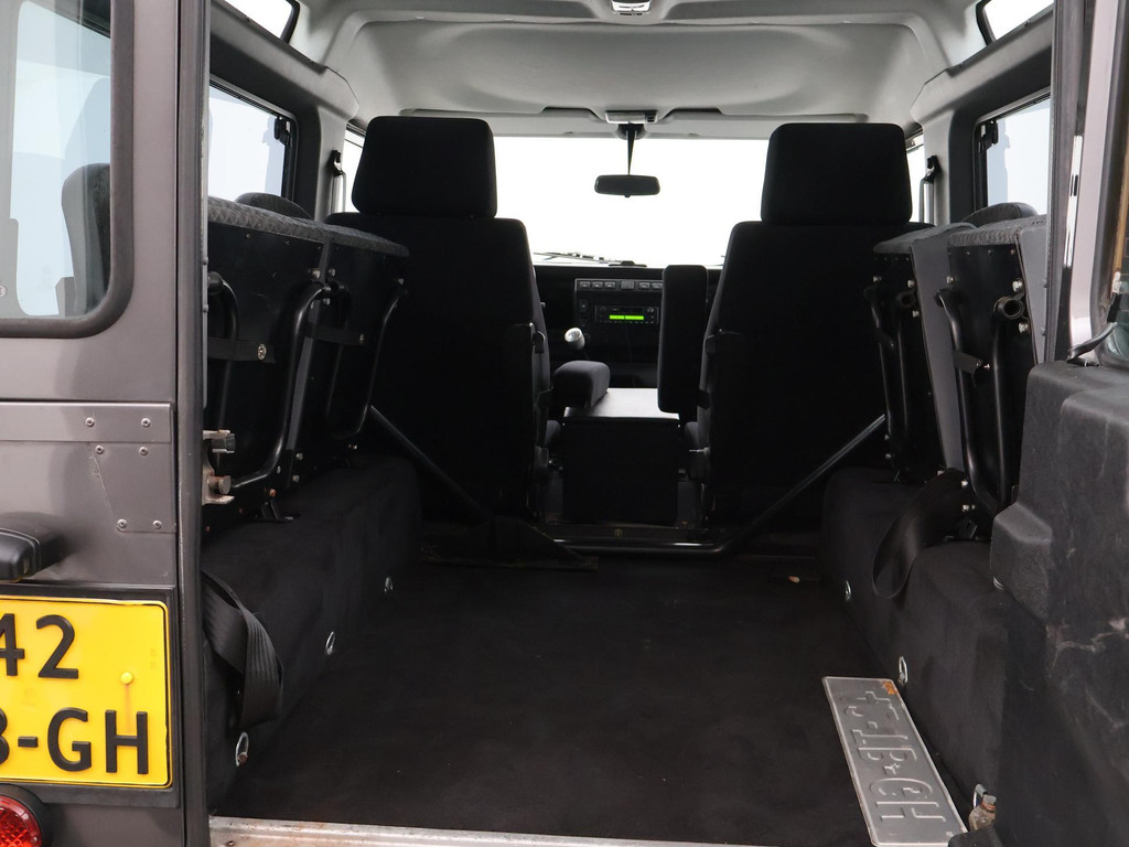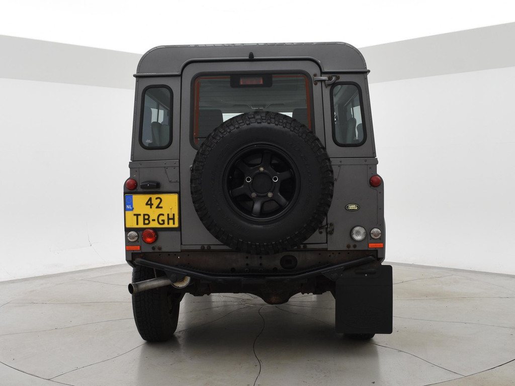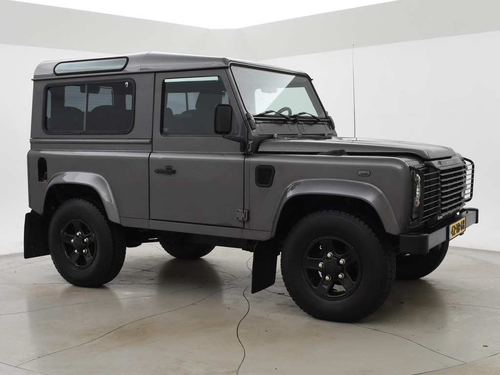 Defender 90" met 6 zitplaatsen dus geel kenteken, Donkergrijs metallic, Scheel-Mann sportstoelen voorin, Leder sportstuurwiel, Airco, Webasto Standkachel, Zwarte lichtmetalen velgen, Koplampbeschermers, Elektrische ramen, Aluminium pook voor de versnellingsbak en de tussenbak, 2.5 TD5 5-cilinder 4X4.