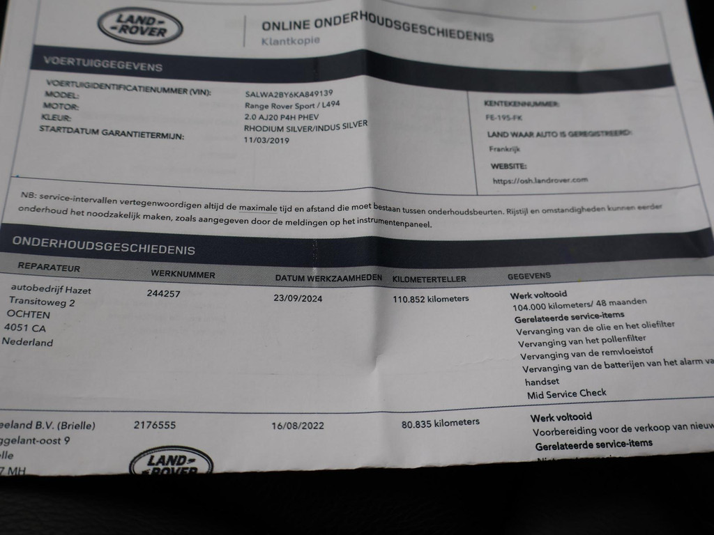 P400e PHEV plug-in hybride met de 2.0 viercilinder benzinemotor met elektromotor Gecombineerd vermogen: 404 PK. AWD vierwielaandrijving, BTW verrekenbaar, Volledig dealer onderhouden, Digitale onderhoudsbewijzen aanwezig online bijgehouden bij Land Rover tot en met 2024, RDW nieuwprijs 109.123 euro, Indus Silver metallic, Volledig digitale cockpit met mogelijkheden voor 1 of 2 tellers of geen tellers en beeldvullende kaartweergave, Apple Carplay / Android Auto appstreaming Google Maps, Spotify, Flitsmeister, TuneIn radio, Whatsapp etc, Meridian premium sound 825 Watt systeem, Elektrisch panoramadak, Head-up display projectie tegen voorruit, 21 inch hoogglans zwarte velgen origineel Land Rover, Privacy glass, Luchtvering met niveauregeling, Lijnassistentie, Climate control, Full LED Premium koplampen, LED achterlichten, All Terrain regelbare rij-eigenschappen afgestemd op de ondergrond, Achteruitrijcamera en parkeersensoren voor + achter, Down hill control, Low Range / Lage gearing, Wi-Fi hotspot.