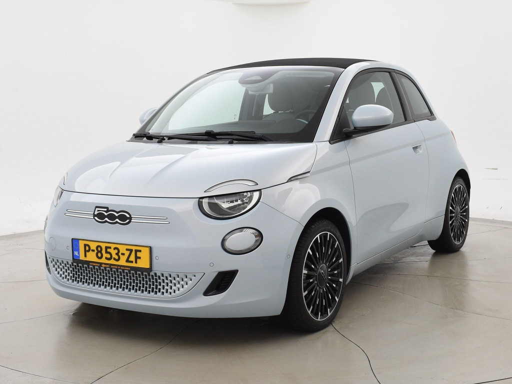Fiat 500e cabrio / 500C 42 kWh in de super gave kleur Celestial Blue, Zeer compleet met breedbeeld navigatie + digitale cockpit met navigatie kaartweergave, Stoelverwarming, Draadloze Apple Carplay appstreaming, 17 inch lichtmetalen velgen, Achteruitrijcamera, Climate control, Leder stuurwiel, LED dagrijverlichting, LED achterlichten, Bluetooth, DAB+ digitale radio, Cruise control.