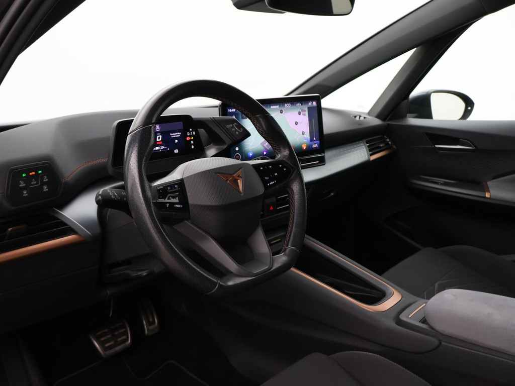 Volledig elektrische Cupra Bron 62 kWh van 12-2021, waardoor de bijtelling (bij zakelijke aanschaf) nog slechts 12% tot en met 31-12-2026. Origineel Nederlandse auto van de 1e eigenaar, BTW verrekenbaar, Adrenaline One uitvoering in het Quasar Grey metallic met koperkleurige accenten, 19 inch lichtmetalen velgen, Sfeerverlichting met verschillende kleuren, Stoelverwarming, Draadloze telefoonlader, Privacy glass, Full LED koplampen, LED achterlichten, Climate control, Navigatie touch-screen, Apple Carplay / Android Auto appstreaming Google Maps, Flitsmeister, Whatsapp etc, DAB+ Digitale radio, Leder stuurwiel multifunctioneel, Achteruitrijcamera.