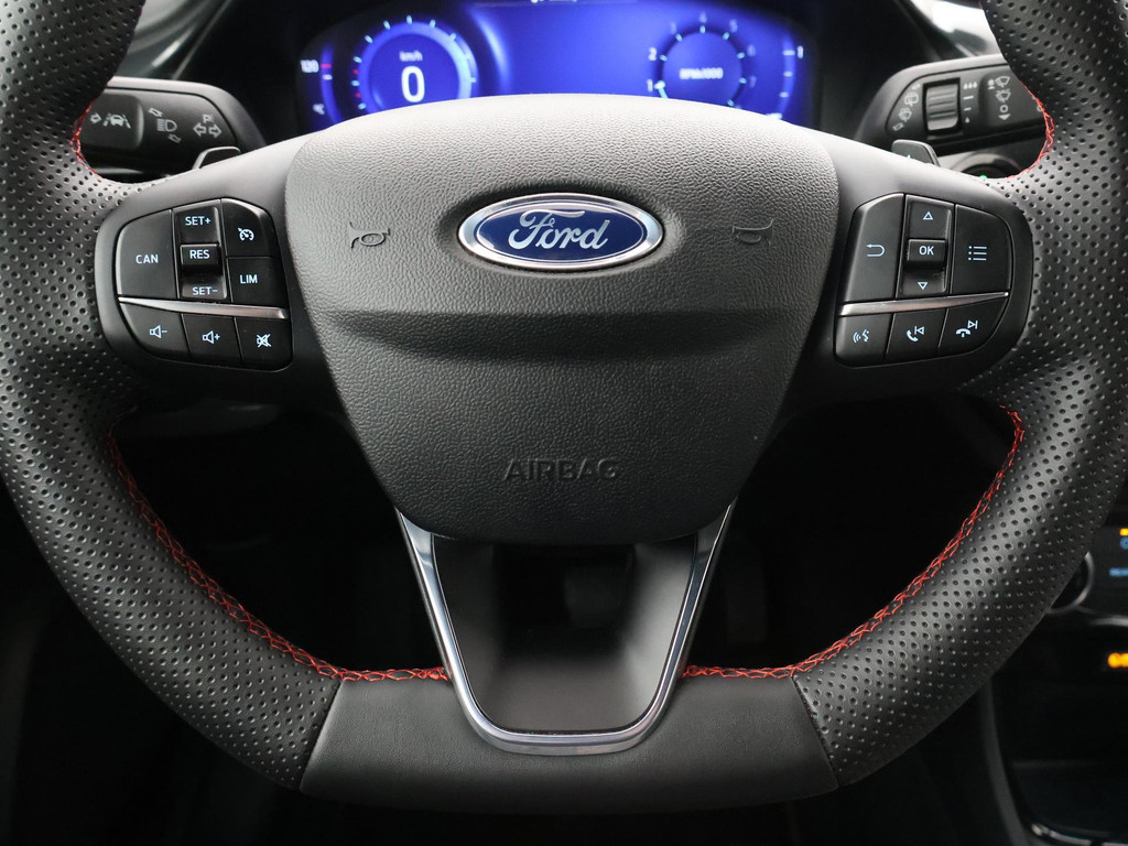 ST-LINE uitvoering, BTW verrekenbaar, 1.0 EcoBoost hybrid automaat, Full LED koplampen, Digitale cockpit, Navigatie, Apple Carplay / Android Auto appstreaming, 17 inch lichtmetalen velgen, LED achterlichten, Leder sportstuurwiel, Cruise control, Bluetooth met audiostreaming, Zwart interieur met rood stiksel, Verkeersbordenherkenning, DAB+ digitale radio, Airco, Parkeersensoren voor en achter met inparkeerhulp, Prijs is exclusief BTW.