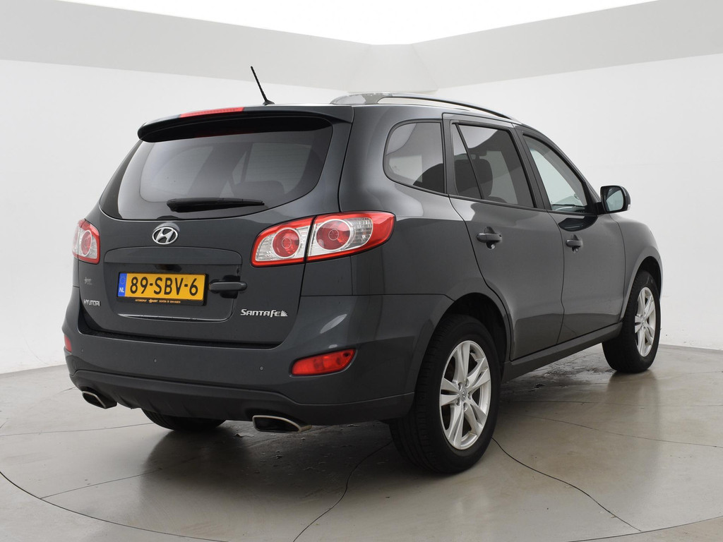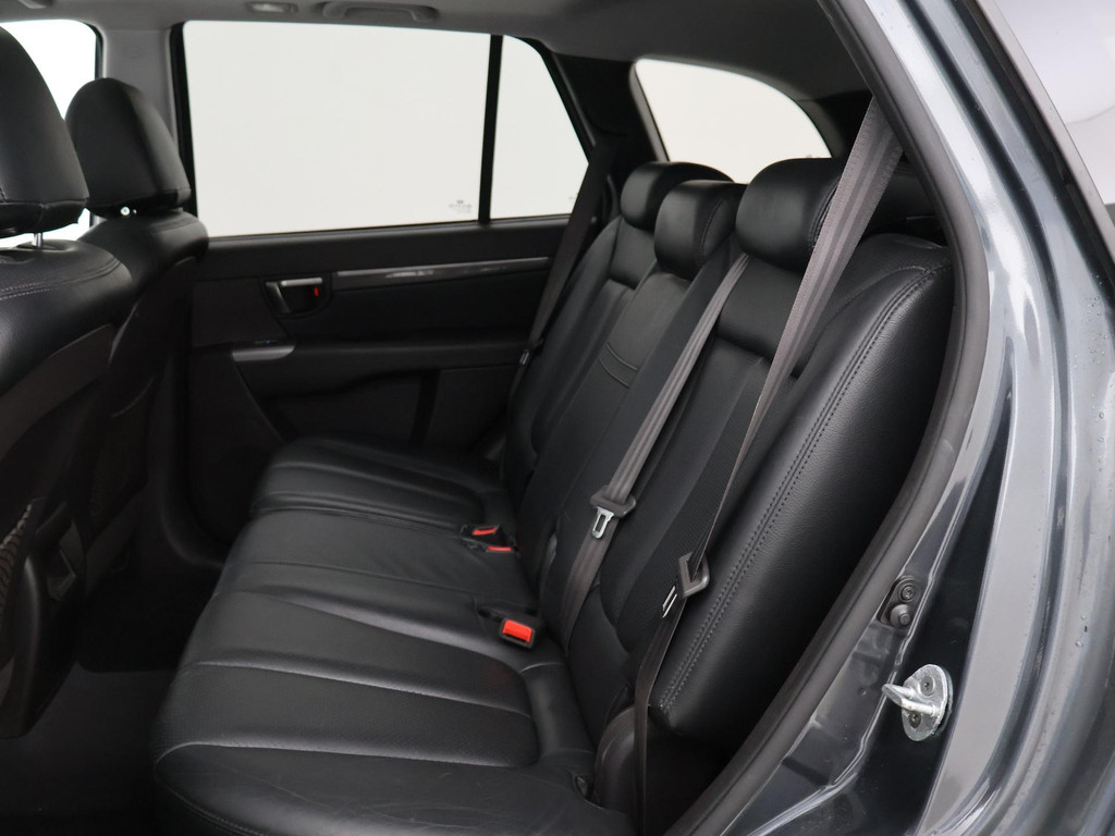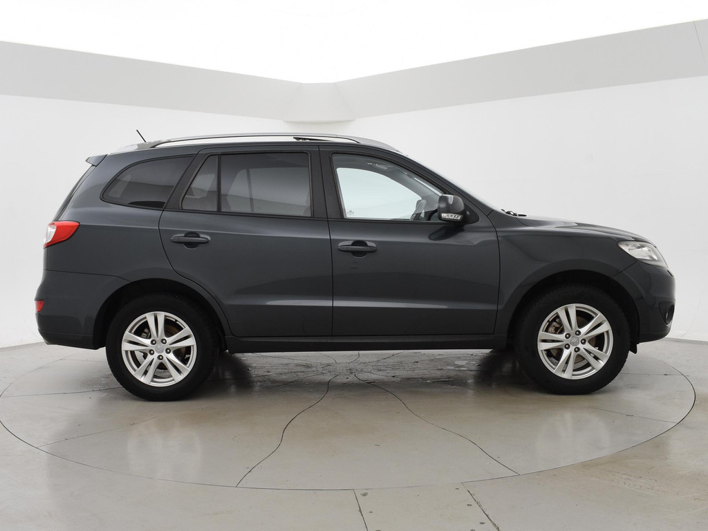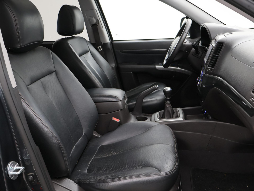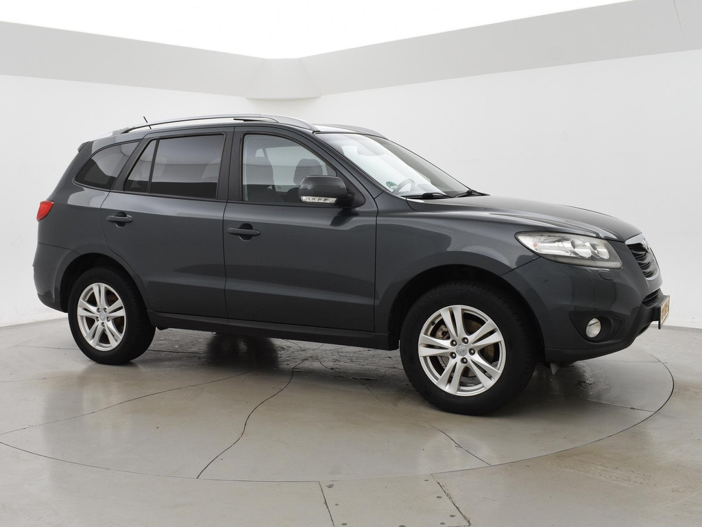 5-persoons geel kenteken benzine Santa Fe 2.4i 174 PK met 6 versnellingen, Donkergrijs metallic met zwart volledig leder interieur, Elektrisch schuif/kanteldak, Navigatie touch-screen, Privacy glass, Cruise control, Xenon verlichting, Climate control, Bluetooth telefoon met audiostreaming, Elektrische stoelverstelling, Koplampsproeiers.