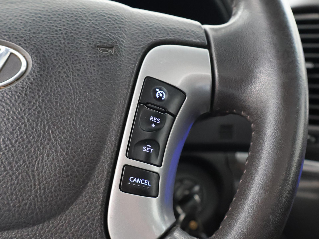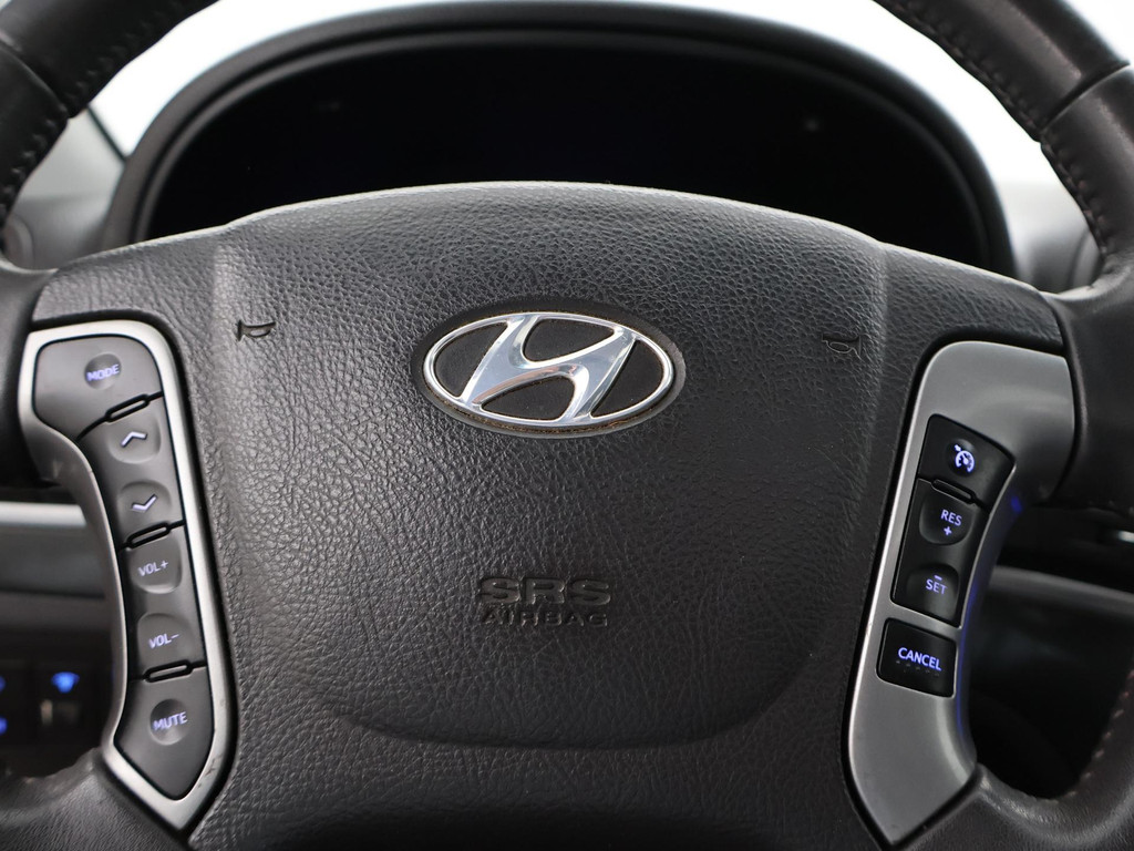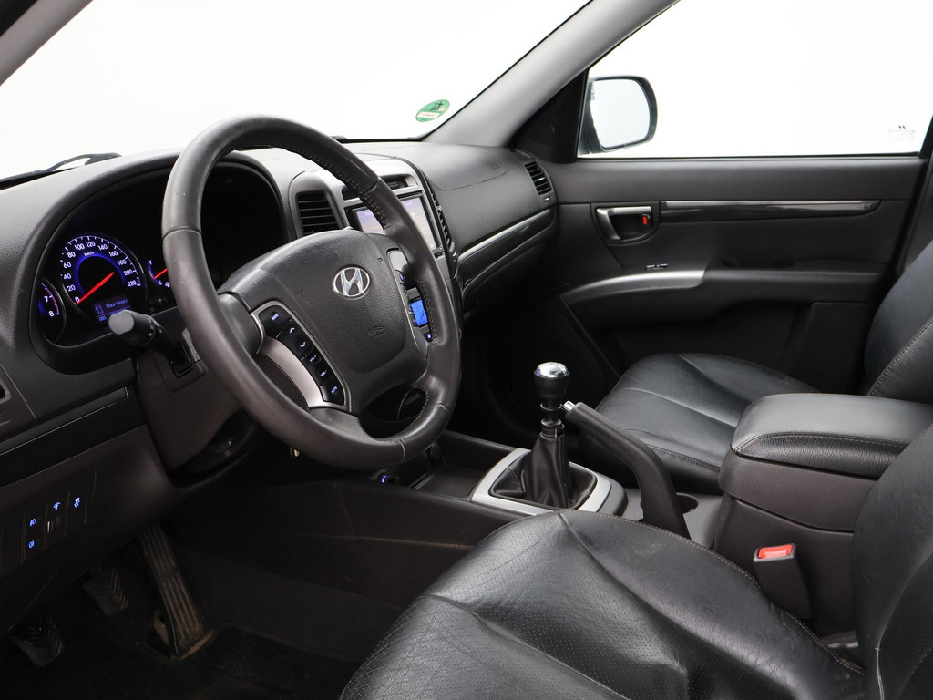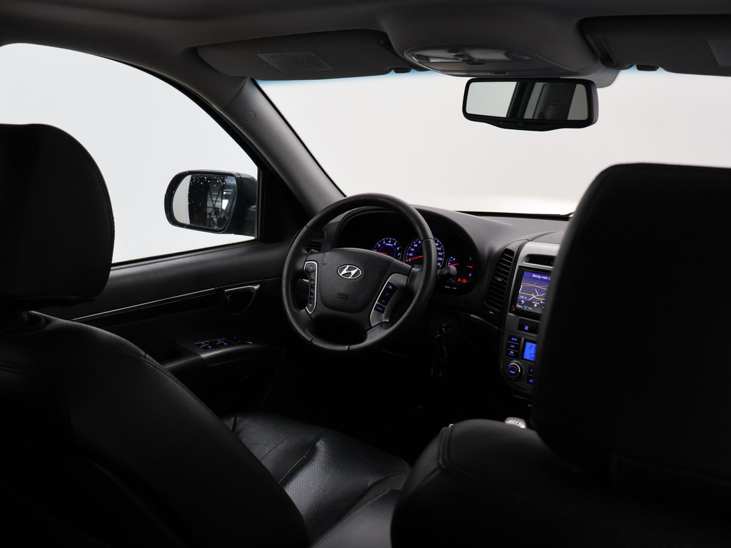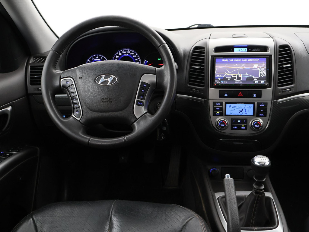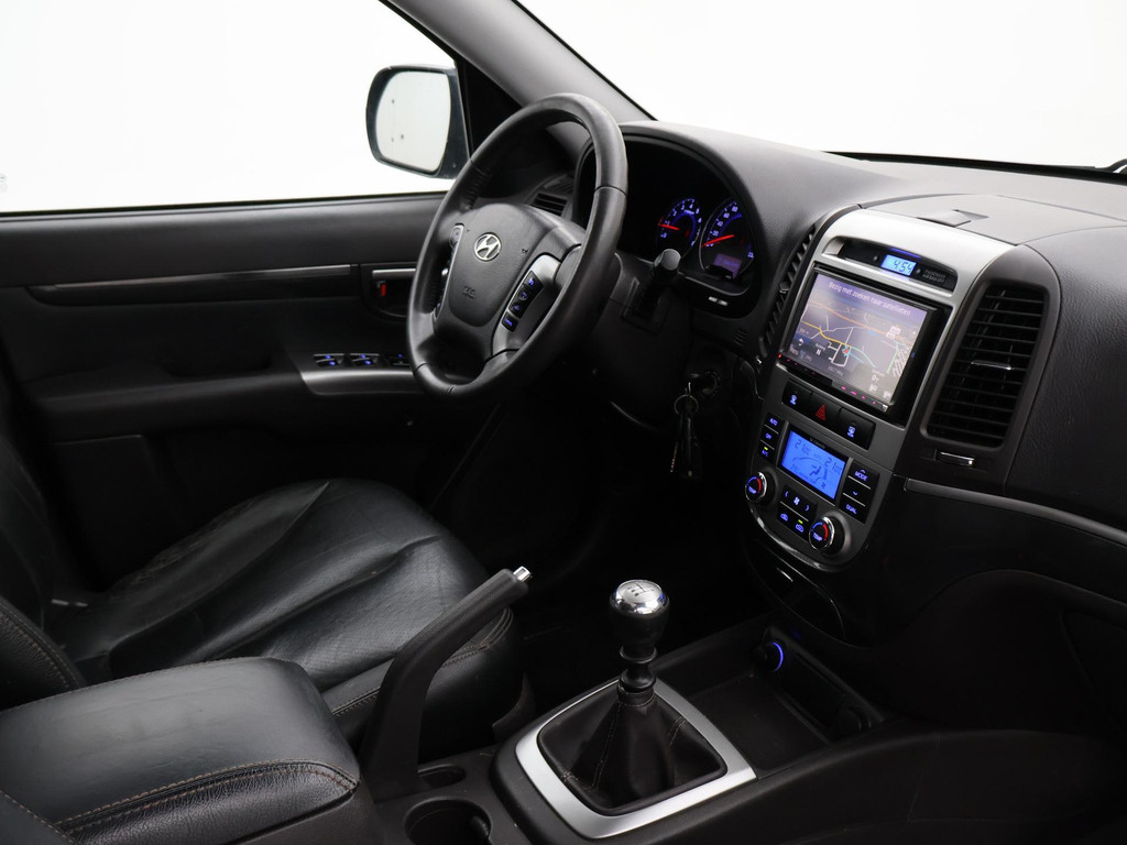 5-persoons geel kenteken benzine Santa Fe 2.4i 174 PK met 6 versnellingen, Donkergrijs metallic met zwart volledig leder interieur, Elektrisch schuif/kanteldak, Navigatie touch-screen, Privacy glass, Cruise control, Xenon verlichting, Climate control, Bluetooth telefoon met audiostreaming, Elektrische stoelverstelling, Koplampsproeiers.