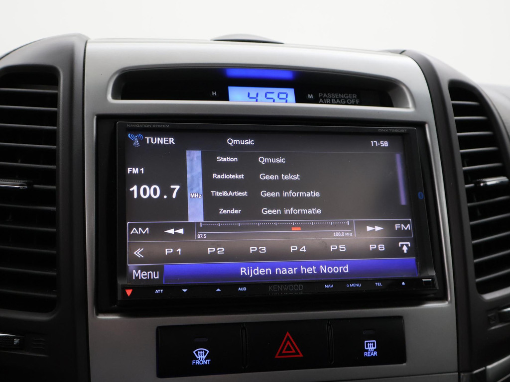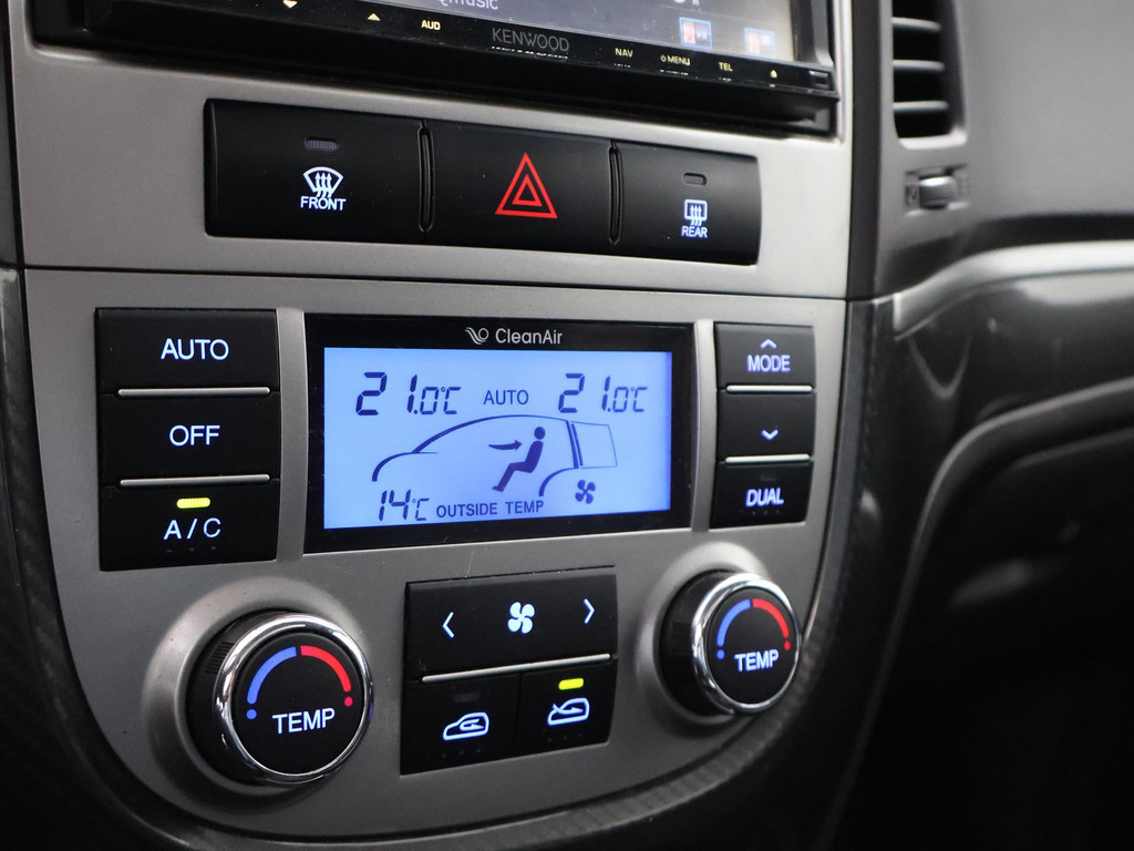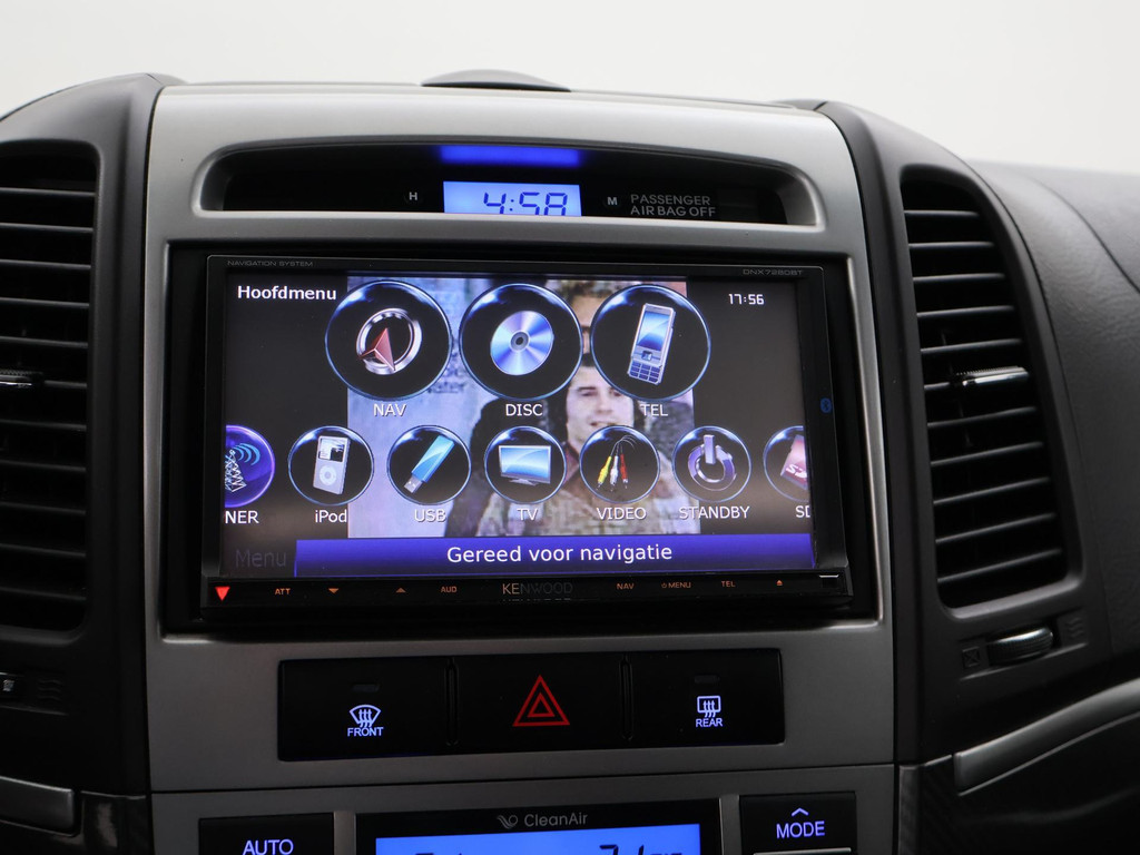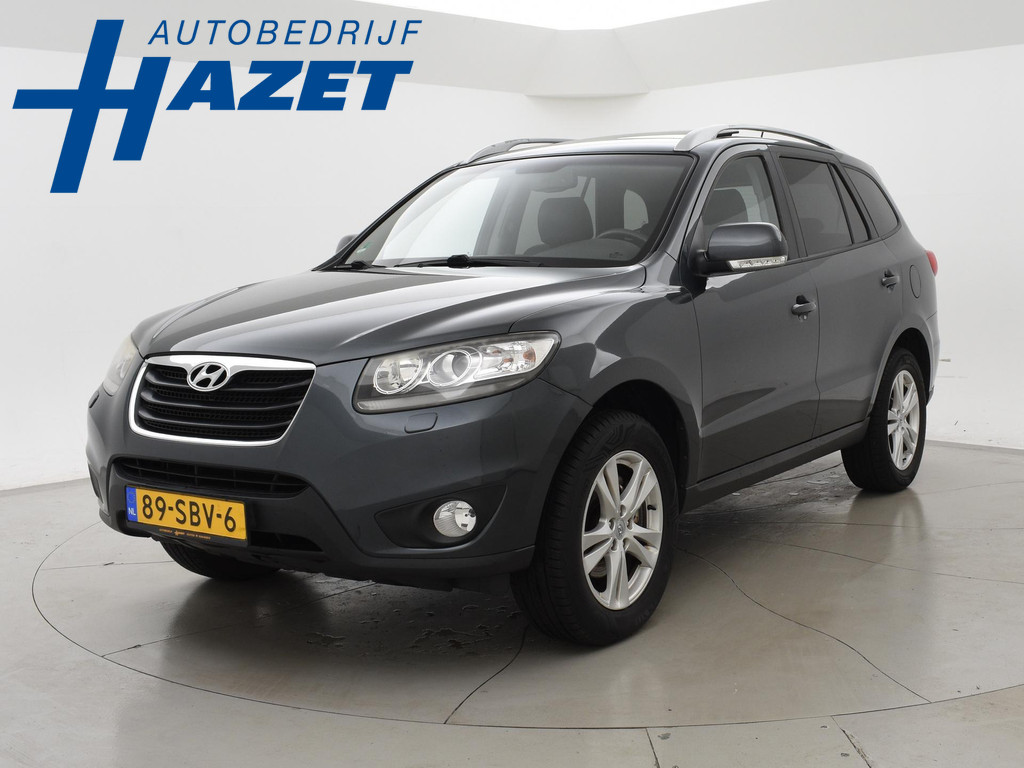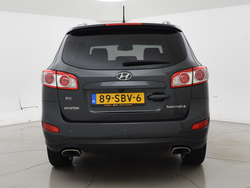 5-persoons geel kenteken benzine Santa Fe 2.4i 174 PK met 6 versnellingen, Donkergrijs metallic met zwart volledig leder interieur, Elektrisch schuif/kanteldak, Navigatie touch-screen, Privacy glass, Cruise control, Xenon verlichting, Climate control, Bluetooth telefoon met audiostreaming, Elektrische stoelverstelling, Koplampsproeiers.