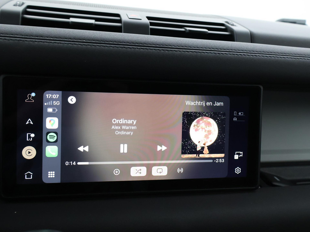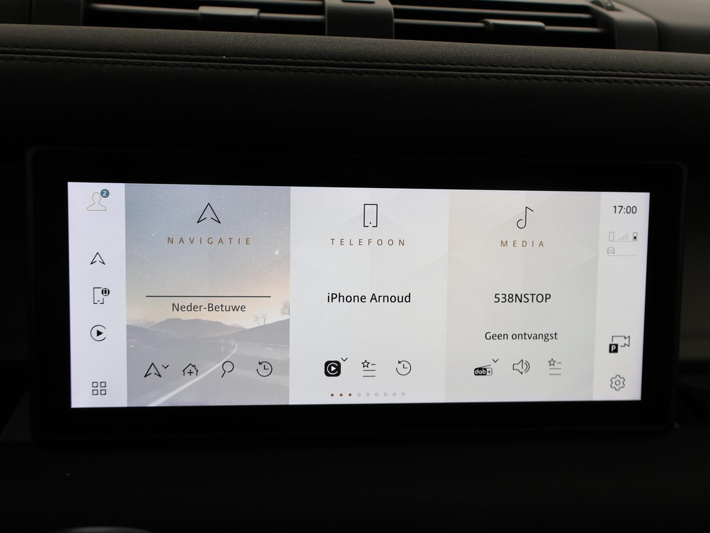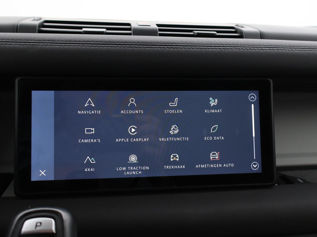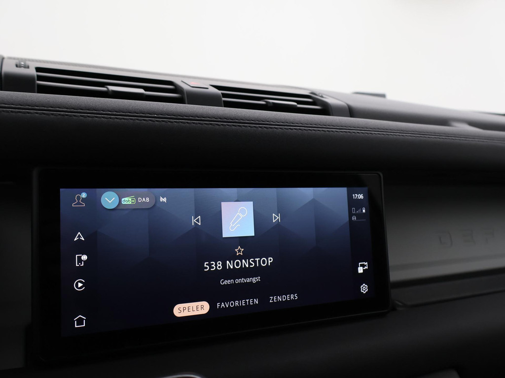 Defender 110 grijs kenteken met 2 zitplaatsen, Gondwana Stone Gloss exterieurkleur met zwart dak, zwarte spiegels en zwarte velgen, Panorama schuif/kanteldak, 360 graden camerasysteem, Stoelverwarming, Stuurwielverwarming, Koelkast in de middenarmsteun, Volledig elektrisch wegklapbare trekhaak met 3500 kg trekgewicht op kenteken, Luchtvering met regelbare rijhoogte, Keyless-entry en keyless-drive, Spiegel met achteruitrijcamera functie en spiegelfunctie, Meridian Premium sound, 19 inch lichtmetalen velgen, Full LED koplampen, LED achterlichten, Digitale cockpit met digitale tellers en navigatie kaartweergave + mediaweergave beeldvullende modus, Profiglass dubbel cabine ombouw met Defender inscriptie in het tussenschot, Draadloze Apple Carplay / Android Auto appstreaming Google Maps, Flitsmeister, Spotify etc, DAB+ Digitale radio, Lijnassistentie, Keyless-entry en keyless-drive, Draadloze telefoonlader, Botswaarschuwing, Cruise control, Elektronisch verwarmde voorruit, Climate control, USB 2 en USB C laders, D240 2.0D Ingenium 240 PK diesel automaat 4x4. Elektronisch sperdifferentieel achter met koppelverdeling dmv remmen (TVBB). Prijs is exclusief BTW.
