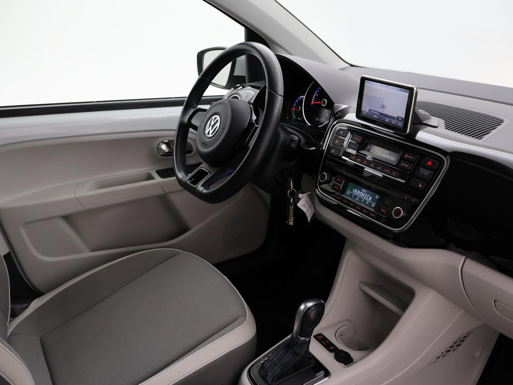 100% elektrische Volkswagen Up!, de e-Up!, Automaat, 5-deurs, Luxe uitvoering met Stoelverwarming, Elektronische voorruitverwarming, Parkeersensoren met schermweergave, Navigatie, Bluetooth telefoon met audiostreaming, Climate control, Lichtmetalen velgen, Donker glas achter, Cruise control, Leder stuurwiel met blauw stiksel.