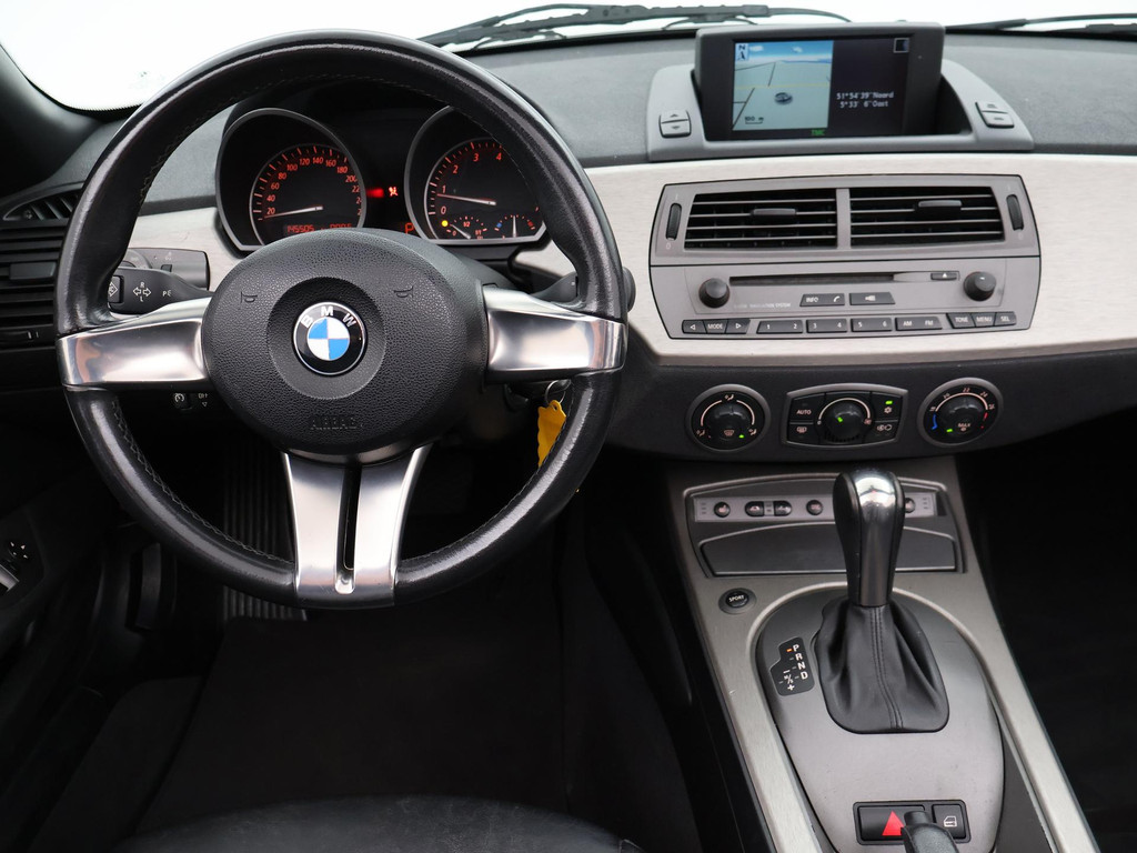 Origineel Nederlandse Z4 3.0I S 231 PK 6-cilinder lijnmotor en automaat, Zwart volledig leder interieur met stoelverwarming, Navigatie, Xenon verlichting, Parkeersensoren, Audio met stuurwielbediening, Cruise control, Elektrische stoelverstelling, Climate control, Zwarte elektrische softtop cabriokap.