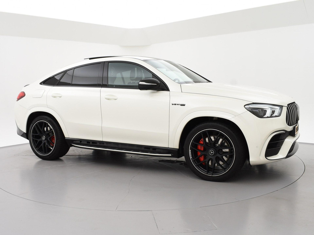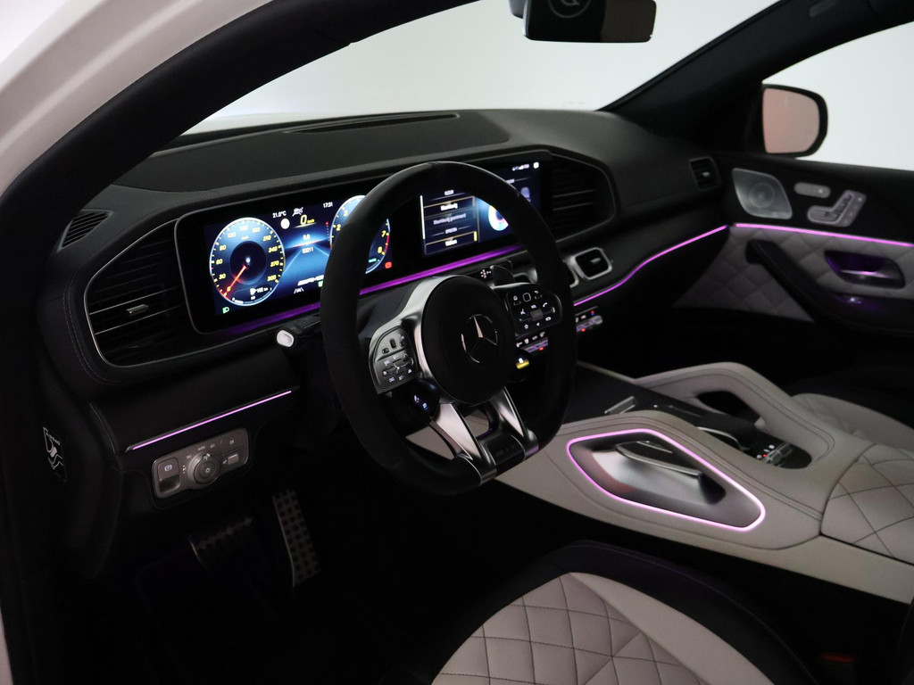 Nieuw model GLE Coupé 63 AMG S 612 PK 4.0 V8 Bi-Turbo 4Matic+ in het Manufaktur Diamantweiss Bright metallic (kleur 799) met Custom made leder exclusief nappaleder wit + zwart met diamond stitching inclusief deurpanelen en middenconsole met contrasterend stiksel. RDW nieuwprijs 226.299 euro, Volledige onderhoudshistorie online bij Mercedes-Benz bijgehouden en aanwezig, Deze auto is door onszelf in 2021 met 6 maanden oud bij het verkooppunt van de Mercedes-Benz fabriek in Duitsland gekocht en geïmporteerd, daarna van 1 Nederlandse eigenaar geweest. Sportuitlaatsysteem AMG met originele elektronisch regelbare kleppen in de einddemper + extra kleppen voor de einddemper op afstandsbediening te regelen. 22 inch AMG breedset velgen, Sfeerverlichting met tientallen kleuren en verschillende kleurcombinaties, Adaptive cruise control Distronic, Dodehoek assistentie, Lijnassistentie, Burmester Premium sound, Treeplanken, Donker glas achter, Panorama schuif/kanteldak, Draadloze telefoonlader, Full LED koplampen, Widescreen digitale cockpit met verschillende thema's en breedbeeld MBUX Navigatie + Apple Carplay / Android Auto. Elektrische stoelverstelling met geheugen links en rechts, Stoelverwarming, Elektrisch verstelbaar stuurwiel, Elektrische achterklep, Luchtvering met regelbare rijhoogte, Zwarte buitenspiegels en achterspoiler, 360 graden surround view camerasysteem, AMG Night Pakket, DAB+ Digitale radio, Verlichte AMG dorpellijsten, 4 zwarte AMG uitlaattips, Verkeersbordenherkenning, Verkeerslichtweergave, Volledig leder dashboard, Rode remklauwen, LED achterlichten, Eikenhout grijs openporig dashboard inleg, Nappaleder + Microvezel AMG Sportstuurwiel, Luchtkwaliteitspakket met luchtverfrissing, AMG Drive Unit stuurwieltoetsen.