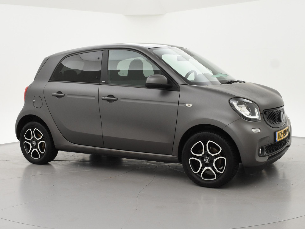 Mat grijs gewrapte Smart FourFour (originele kleur is rood), Panoramadak, Climate control, Privacy glass, Cruise control, Lichtmetalen velgen, Navigatie, Bluetooth met audiostreaming, Botswaarschuwing, Kleurenscherm boardcomputer, Onderhoudshistorie aanwezig, LED dagrijverlichting, Middenarmsteun.