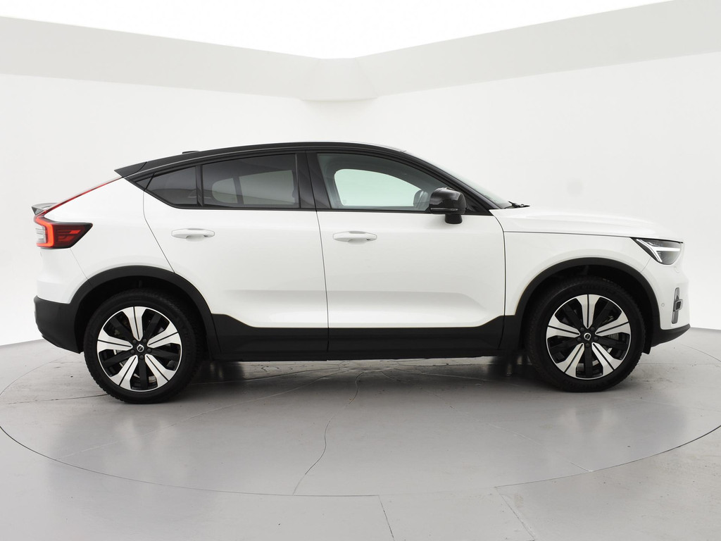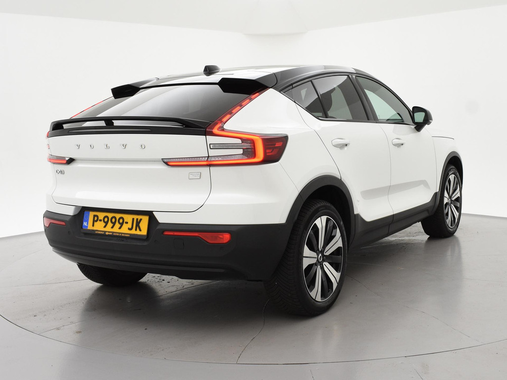 Origineel Nederlandse Volvo C40 Recharge 408 PK Twin Intro Edition, 78 kWh, Enorme volle intro edition met vrijwel alle opties, Elektrisch wegklapbare trekhaak met 1800 KG trekgewicht! 360 Graden camera, Panoramadak, Harman Kardon premium sound, Leder alcantara sportstoelen met verlengbaar zitvlak en stoelverwarming, Elektrische stoelverstelling met geheugenstanden, Apple carplay/Android auto met verschillende apps waaronder: Spotify, Whatsapp en Flitsmeister, 19 Inch lichtmetalen velgen, Adaptieve cruise control met regelbare afstand op de voorganger, Pilot assist, Digitale cockpit met navigatieweergave, Multifunctioneel leder stuurwiel met stuurwielverwarming, Elektrische achterklep, Youtube, Volledig Volvo dealer onderhouden, Boekje afgestempeld aanwezig, Lane keeping assist, Dodehoek detectie, Draadloze telefoonlader.