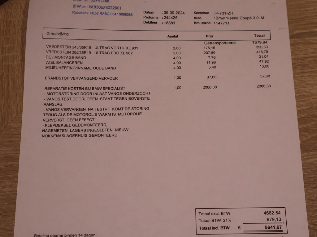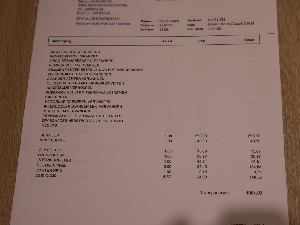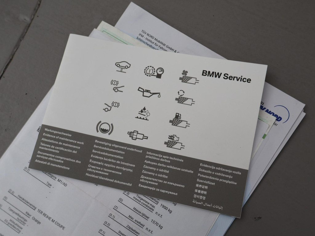 Originele 1M 1-serie Coupe 3.0i M met de 3.0 Bi-Turbo 6-cilinder lijnmotor met 340 PK vermogen op de achterwielen met een 6-bak handbak, Slechts 6.309 exemplaren wereldwijd geleverd. Gebouwd op 30-03-2012 dus één van de laatste van de 1M. Super gave kleurstelling: Valencia Orange Metallic (B44) met Zwart interieur met oranje stiksels in de stoelen, deurpanelen en dashboard. De laatste 3 jaar bij ons onderhouden, voor 25.000 euro aan werkplaatsfacturen aanwezig van 2023-2024-2025 waaronder de complete revisie van de versnellingsbak, nieuwe koppeling, nieuwe Vanos, Bobines, remmen, banden etc. - M-Sportstoelen met verlengbaar zitvlak, M-Sportstuurwiel, Zwarte hemelbekleding, Meisterschaft sportuitlaat met bijzonder zwaar geluid, Originele BMW einddemper ook aanwezig in de kofferbak, Xenon koplampen, LED achterlichten, 19 inch lichtmetalen velgen breedset, Cruise control, Climate control, Bluetooth telefoon met audiostreaming, Elektrisch inklapbare buitenspiegels, Elektrische stoelverstelling met geheugen bestuurder, Elektrische bijrijdersstoel, Zwarte nieren, Parkeersensoren, Deze auto is nieuw geleverd in Korea, daarom werkt de navigatie niet. Er zit Navigatie Professional breedbeeld in.