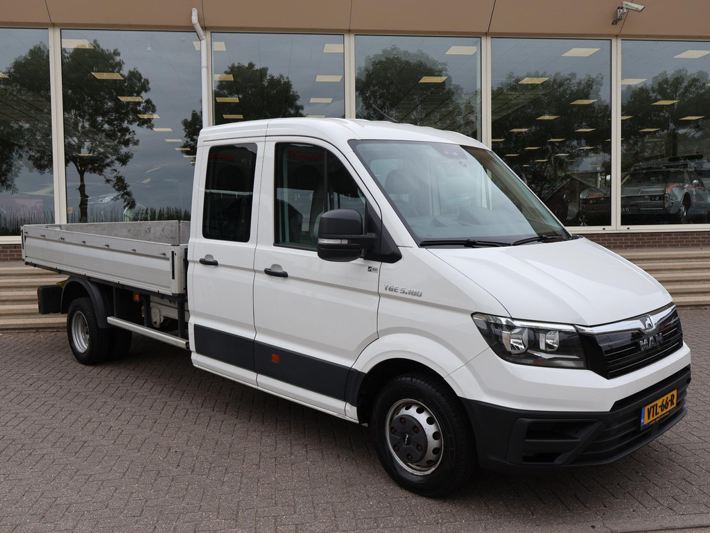 Extra lange uitvoering van de MAN TGE met de extra verzwaarde achteras met dubbel lucht, de 5.180 / TGE 50 uitvoering, Teruggekeurd naar 3500 kg dus gewoon B-rijbewijs, Trekhaak met 3500 kg trekgewicht op kenteken, zowel een vangmuil als trekhaakkogel aanwezig, 7-persoons grijs kenteken dubbel cabine met open laadbak met aluminium schotten met 349 cm laadlengte, 203 cm breedte en 40 cm schothoogte. Standkachel origineel vanaf fabriek, Apple Carplay / Android Auto appstreaming Google Maps, Flitsmeister, Spotify etc, Navigatie touch-screen, Achteruitrijcamera, Airco, Spraaksturing, Bluetooth met audiostreaming, Digitale tachograaf, In juni 2025 is de turbo vervangen, Prijs is exclusief BTW.
