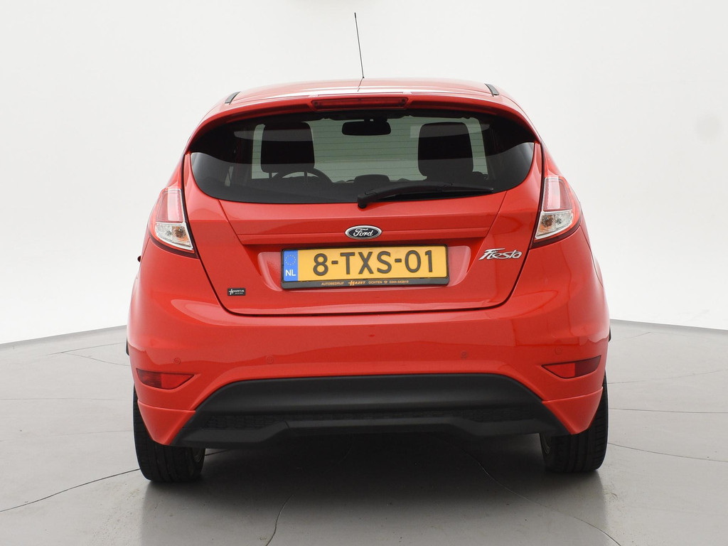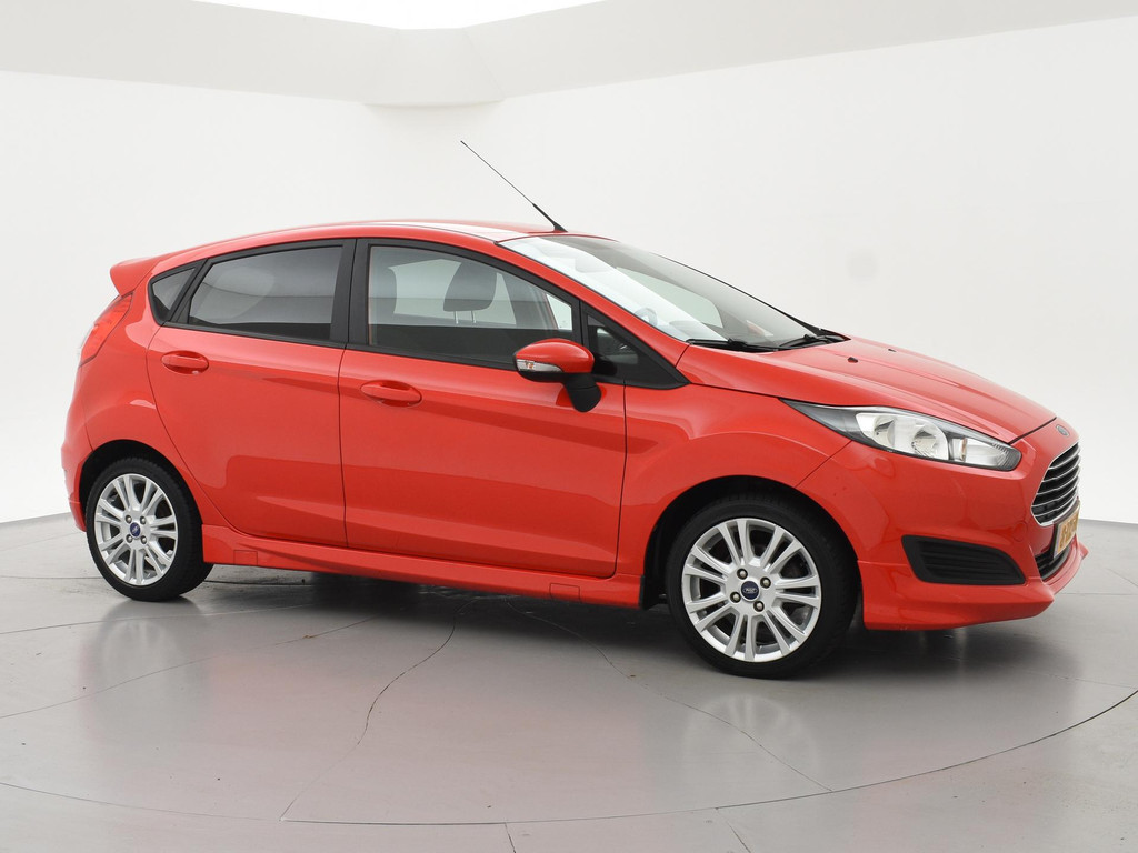 Origineel Nederlandse Ford Fiesta van 05-2014, 1.0 EcoBoost 100 PK Hot Hatch uitvoering, Sportieve uitvoering met sportbumpers rondom, Sideskirts, Spoiler en 16 inch lichtmetalen velgen, Race Red exterieurkleur, Airco, Navigatiesysteem met kaartweergave, Bluetooth telefoonverbinding met audiostreaming, Multifunctioneel stuurwiel, Cruise control, Onderhoudsboekje afgestempeld aanwezig.