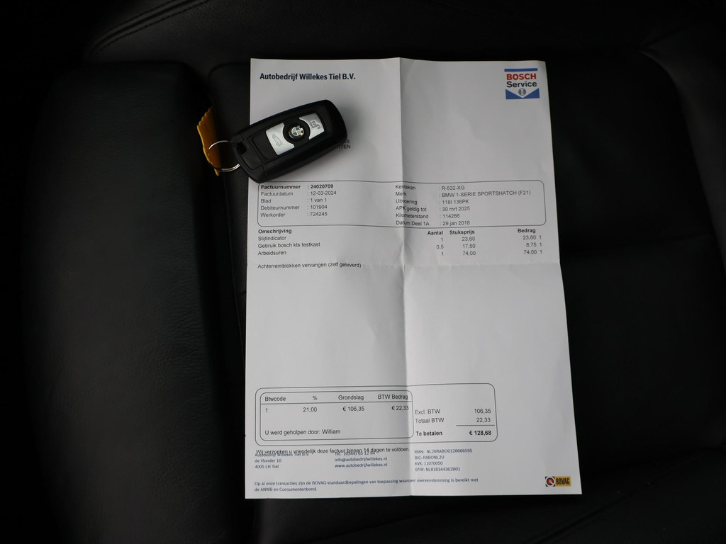 BMW 118i 3-Deurs 136 PK Handgeschakeld met 6 versnellingen, Volledig leder sportinterieur met stoelverwarming, Sportstoelen met verlengbaar zitvlak, 18 Inch lichtmetalen velgen, Bluetooth telefoonverbinding met audiostreaming, Navigatiesysteem met kaartweergave, Climate control, Cruise control.