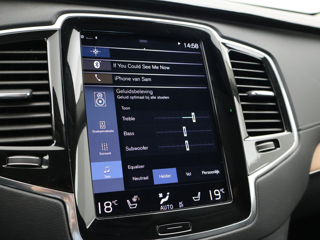 T8 Plug-in hybrid 456 PK AWD Automaat, 7-Persoons uitvoering, Long Range uitvoering met een verlengde actieradius tot maximaal 70 kilometer, Wegklapbare trekhaak met 2350 kg trekgewicht op kenteken, Luchtvering met regelbare rijhoogte, Head-up display, Stoelverwarming voor, Stuurwielverwarming, Standkachel waarmee je de auto met de Volvo app kan laten voorverwarmen, Zonneschermen achterin, 360 Graden camera met aparte trekhaak modus, Elektrische stoelverstelling met geheugen, Privacy glass, Draadloze Apple Carplay / Android Auto appstreaming Google Maps, Flitsmeister, Spotify etc, Full LED koplampen, LED achterlichten, Keyless-entry en keyless-drive, Elektrische achterklep, Adaptive cruise control met Pilot Assist, Verkeersbordenherkenning, Lijnassistentie, DAB Digitale radio, Navigatie groot scherm touch-screen, Digitale cockpit met verschillende thema's, Bluetooth met audiostreaming, 21 inch lichtmetalen velgen.