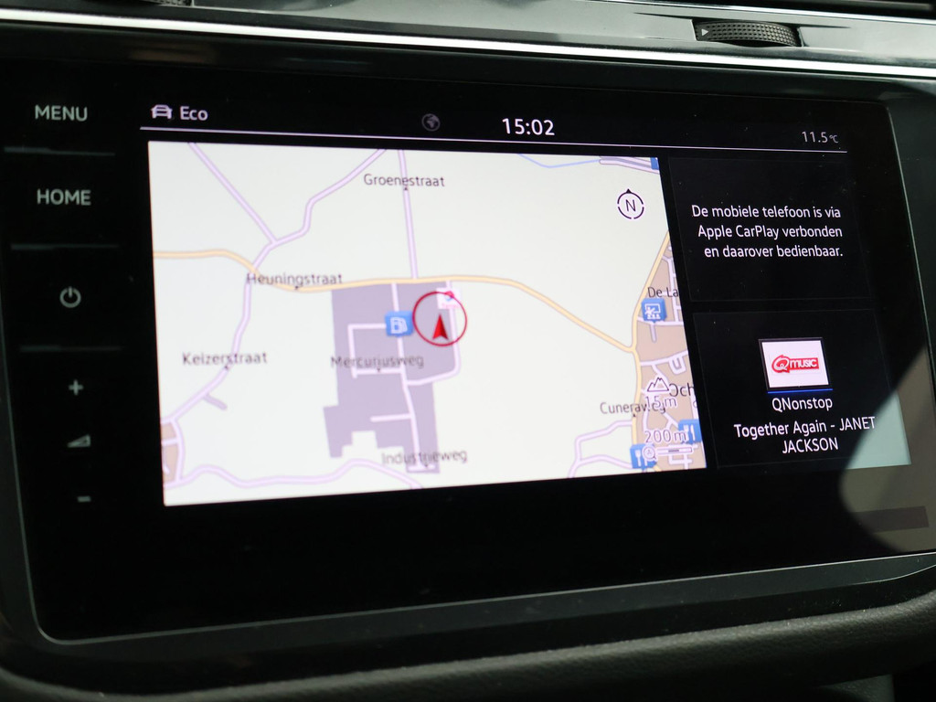 Bijzonder complete Tiguan Allpace 1.5 TSI 150 PK DSG Automaat in de Highline uitvoering met R-LINE sportpakket, Origineel Nederlandse en 1e eigenaar auto, BTW verrekenbaar, Elektrisch wegklapbare trekhaak met 1800 kg trekgewicht op kenteken, Originele Volkswagen fietsendrager en dakdragers, Achteruitrijcamera met aparte trekhaak modus, Massage bestuurdersstoel, Virtual cockpit digitale cockpit met verschillende tellerweergave mogelijkheden van navigatie kaartweergave tussen de tellers en beeldvullend, Stoelverwarming, Privacy glass, Panorama schuif/kanteldak, Apple Carplay / Android Auto appstreaming Google Maps, Flitsmeister, Spotify etc, 19 inch lichtmetalen velgen, Elektrische achterklep, Zwarte hemelbekleding, Keyless-drive en keyless-entry, Adaptive cruise control, 3-Zone Climate control met aparte display achterin, Bluetooth met audiostreaming, Full LED koplampen, LED achterlichten, Buitenspiegels elektrisch inklapbaar en verwarmd, Regelbare rij-eigenschappen / drive mode, Dodehoek detectie, Lijnassistentie, Parkeersensoren met automatisch inparkeren, Platinum Grey metallic exterieurkleur, Dimlichten automatisch, Tafeltjes achterin. Extra ruime kofferruimte in verband met Allspace uitvoering.