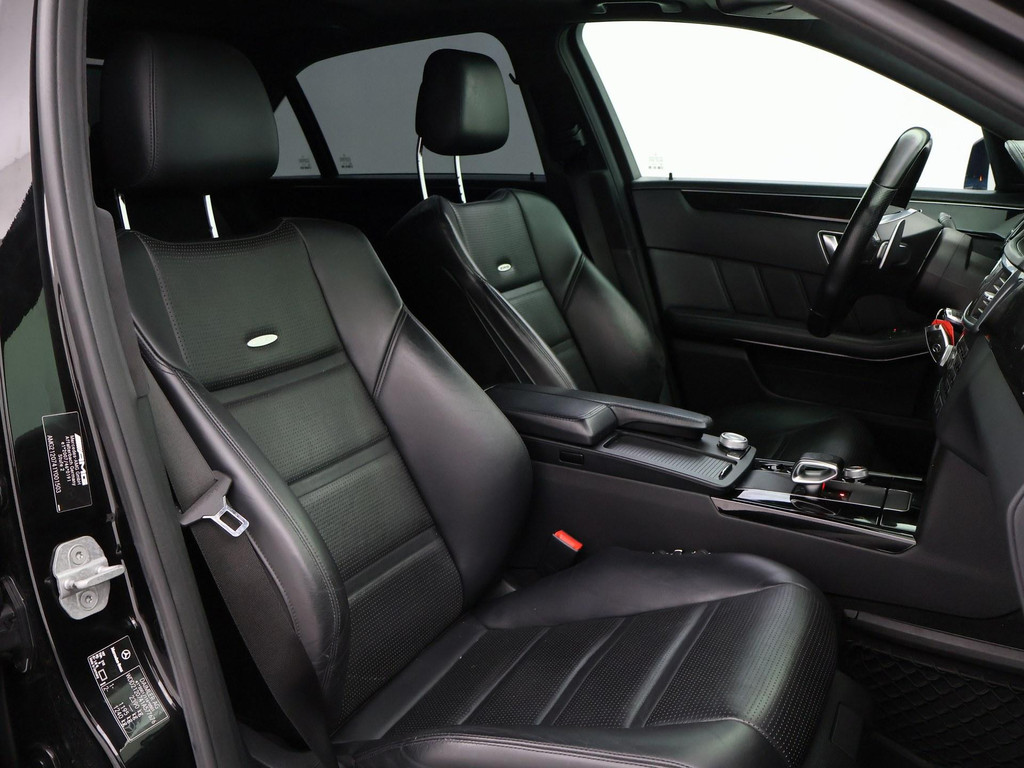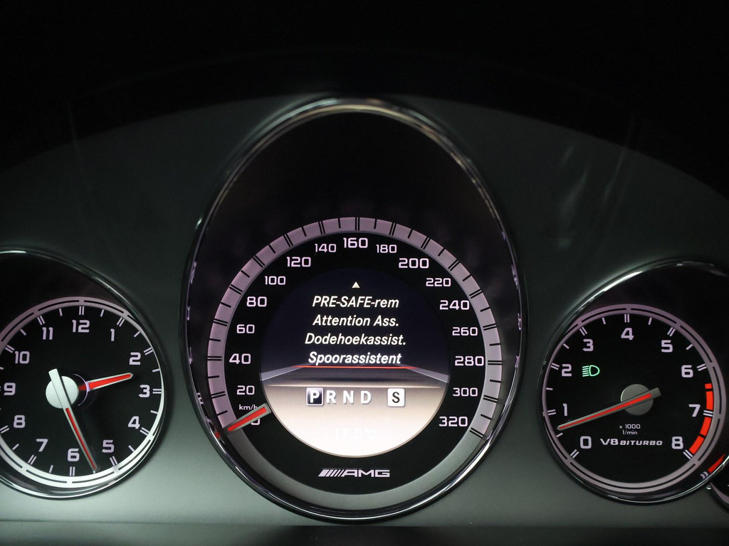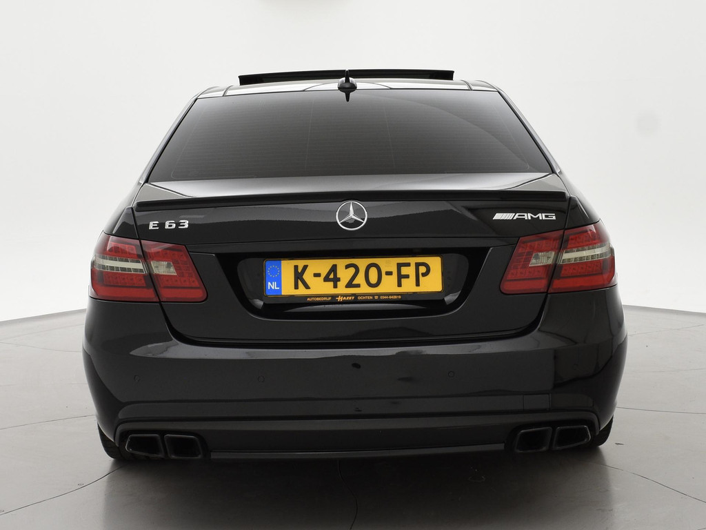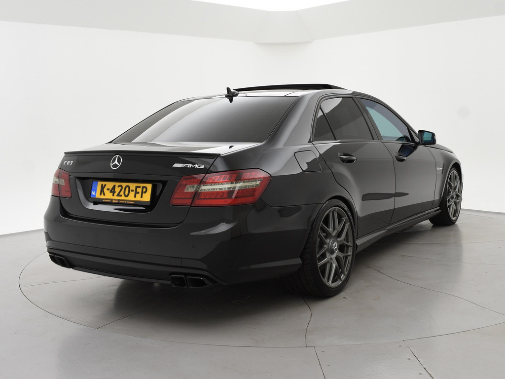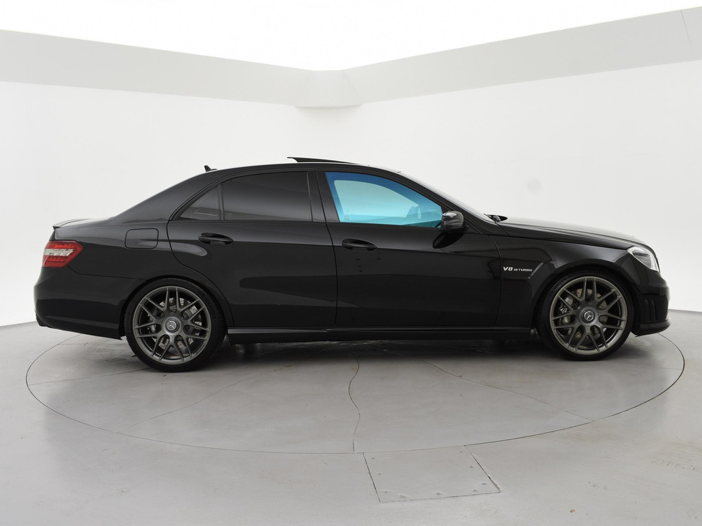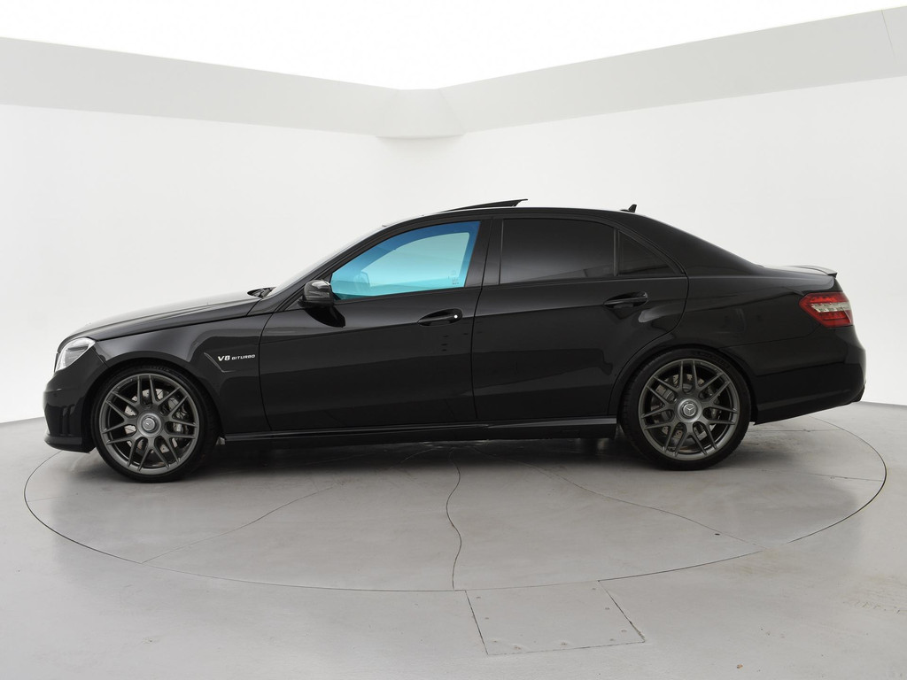 E 63 AMG van 12-2011, ook echt gebouwd in 12-2011 (07-12-2011) waardoor dit het facelift model is die eind 2011 op de markt kwam met de nieuwe Bi-Turbo motor, tot half 2011 was er een ongeblazen 6.3 liter V8, maar deze nieuwe motor is een 5.5 Bi-Turbo met maarliefst 700 Nm koppel en 525 PK vermogen, overgebracht naar de achterwielen met een 7-traps automaat. Exterieurkleur: Obsidian Black metallic, Interieurkleur: Designo zwart leder met compleet zwart leder dashboard en zwarte hemelbekleding. Panorama schuif/kanteldak, Distronic adaptive cruise control, Stoelventilatie, 20 inch lichtmetalen velgen breedset met 295 bandbreedte achter en 245 voor, Privacy glass achter en chameleon folie op de voorportieren en vorruit, Xenon koplampen, Elektrische achterklep, Keyless-entry en keyless-drive, Harman/Kardon premium sound, Achteruitrijcamera, Keyless-entry en keyless-drive, Multicontourstoelen, Climate control met aparte display/bediening achterin, Elektrisch zonnescherm voor de achterruit, Dodehoek assistentie, Attention Assist, Parkeersensoren voor + achter, Sfeerverlichting interieur, Elektrische stoelverstelling met geheugen, Bluetooth telefoon met audiostreaming, Diverse onderhoudsfacturen aanwezig.