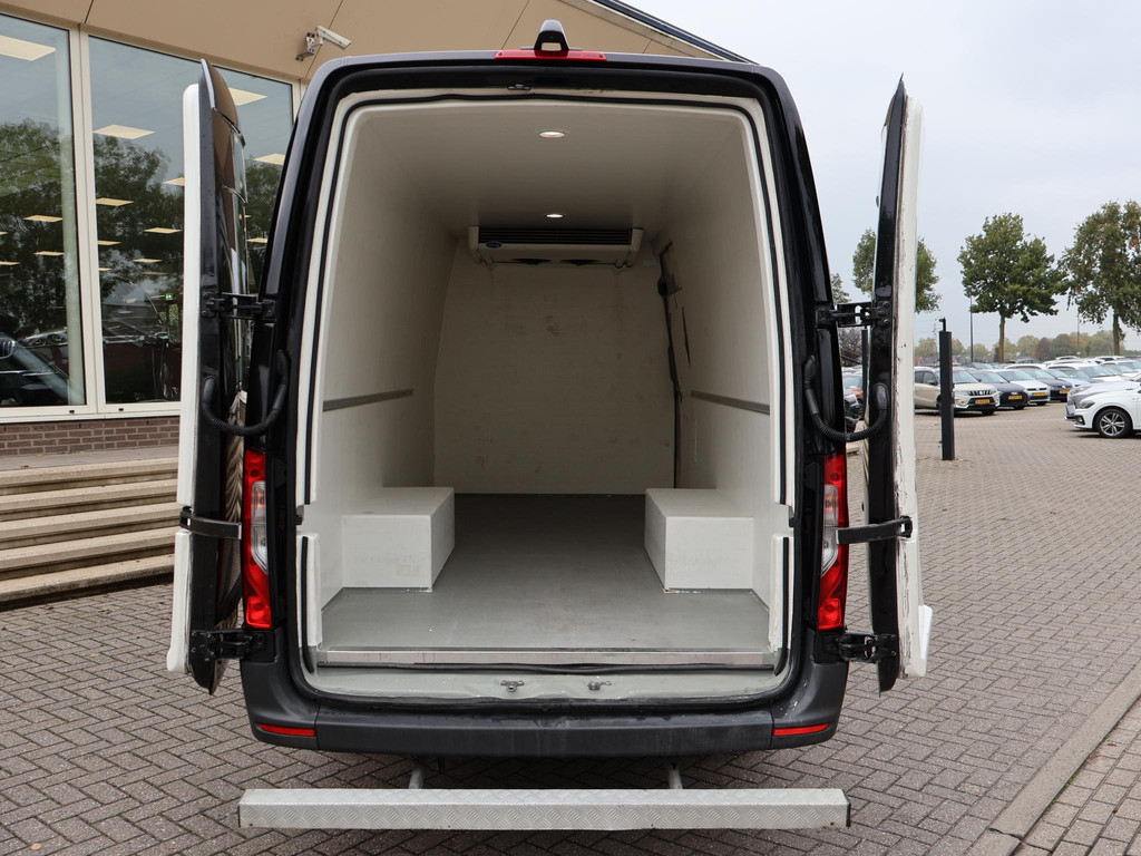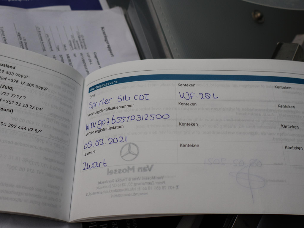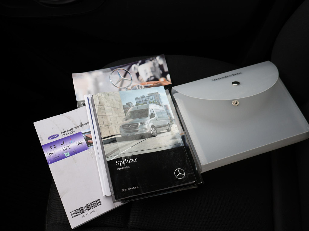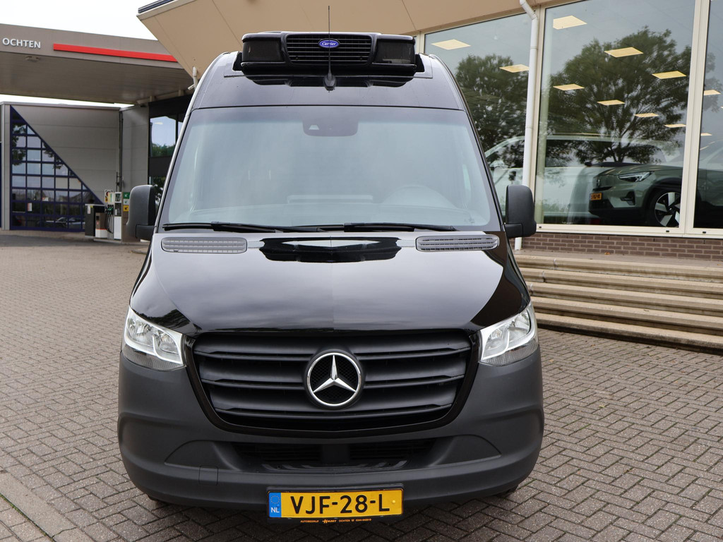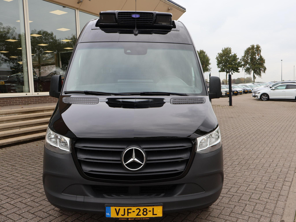 Sprinter 516 CDI 2.2 CDI 163 PK automaat, L3H2 uitvoering dus extra lang, Euro 6 emissienorm, Origineel Nederlandse en 1e eigenaar auto, Exterieurkleur Diepzwart (MB9040), Dubbel lucht achter extra sterke en zware 5-tons uitvoering maar teruggekeurd naar 3500 kg dus gewoon B-rijbewijs, Koelwagen ombouw door Peters Koelwagens B.V. uit Oss met een Carrier koelinstallatie met buitenunit boven de cabine, Bouwjaar koelinstallatie net als de auto ook 2021. Goed werkende koelinstallatie, Door ons goed getest, Koelt tot 0 graden (-0,3 graden is het laagste wat in te stellen is). Aansluiting voor nachtkoeling/stroom aansluiting. Luxe uitvoering met Navigatie MBUX touch-screen, DAB+ digitale radio, Apple Carplay / Android Auto appstreaming Google Maps, Flitsmeister, Spotify etc, Achteruitrijcamera, Dodehoek assistentie, Elektrisch inklapbare buitenspiegels, Bluetooth met audiostreaming, Comfort bestuurdersstoel met verlengbaar zitvlak en armleuning, Multifunctioneel stuurwiel met audiobediening en Cruise control, Attention Assist vermoeidheidsherkenning, Verkeersbordenherkenning, Spoorassistent lijnassistentie, Airco met digitaal display, Bumper beschermbalk achter, Zijmarkeringslichten, Schakelflippers aan het stuurwiel, Zijschuifdeur met sluitbekachtiging, Binnenmaten laadruimte: 410 cm laadlengte, 165 cm laadbreedte (95 tussen de wielkasten) en 180 cm hoogte. Prijs is exclusief BTW.
