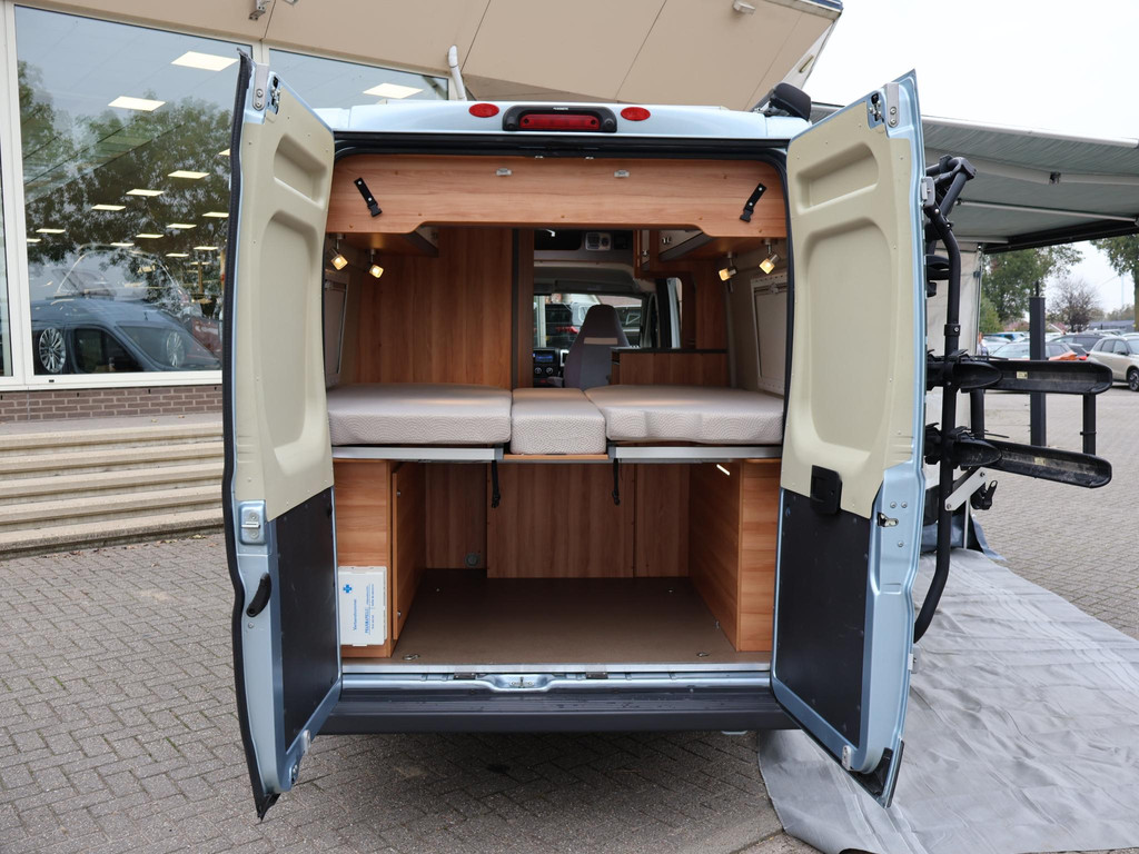 - Twee grote eenpersoonsbedden (met bedzijde van 2 meter) achterin voor in en uitstap gemak ook makkelijk te gebruiken als tweepersoonsbed