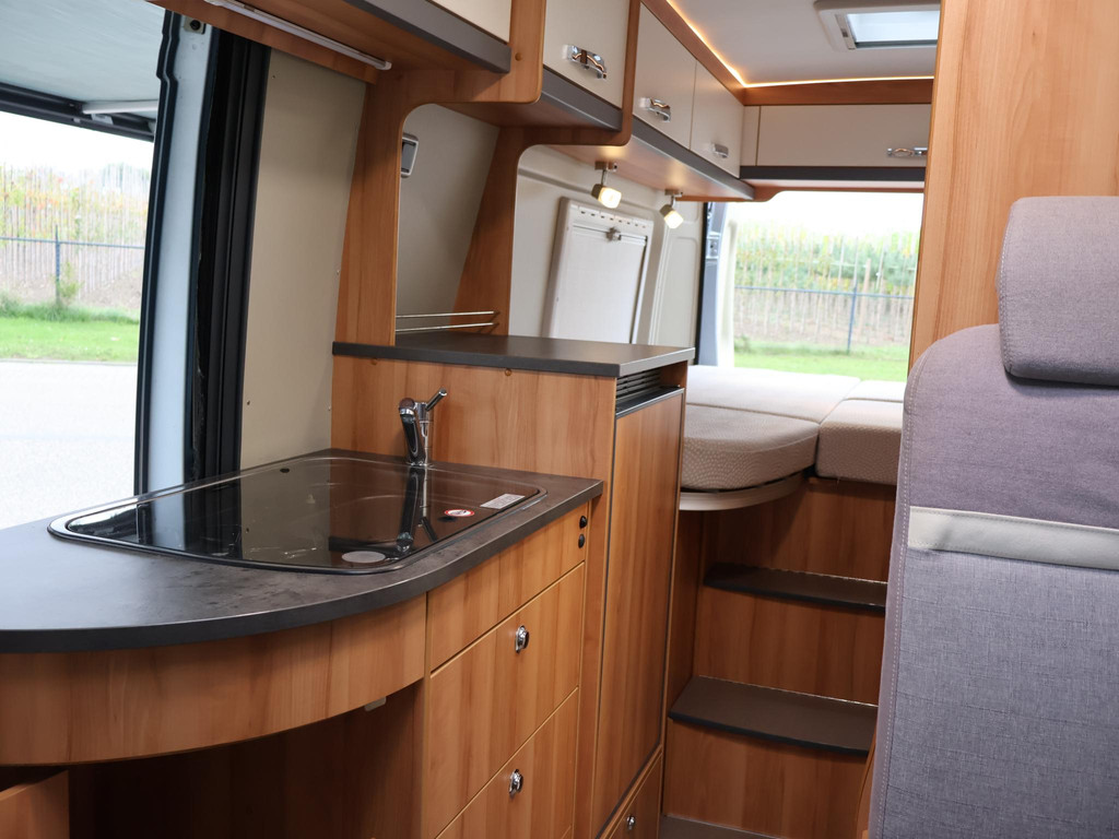 Het culinaire en praktische design van de Summit 640 maakt koken onderweg moeiteloos. Het extra grote keukenblok (grootste keuken in een Pössl) biedt alle ruimte die u nodig heeft, terwijl de 100 liter koelkast zorgt voor voldoende opslagcapaciteit voor verse producten en ingrediënten. Of u nu geniet van lokale delicatessen of Hollandse maaltijden bereidt, deze keuken geeft u het gemak om overal iets lekkers op tafel te zetten.