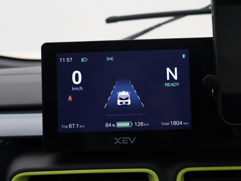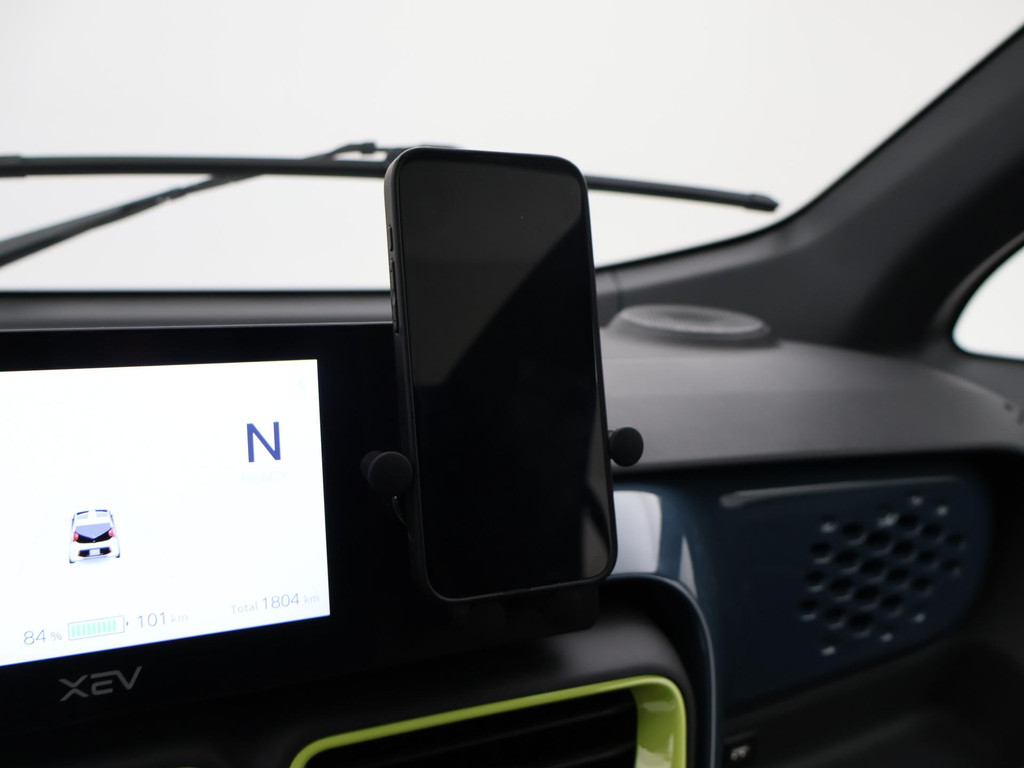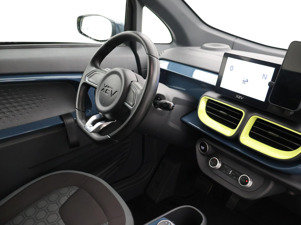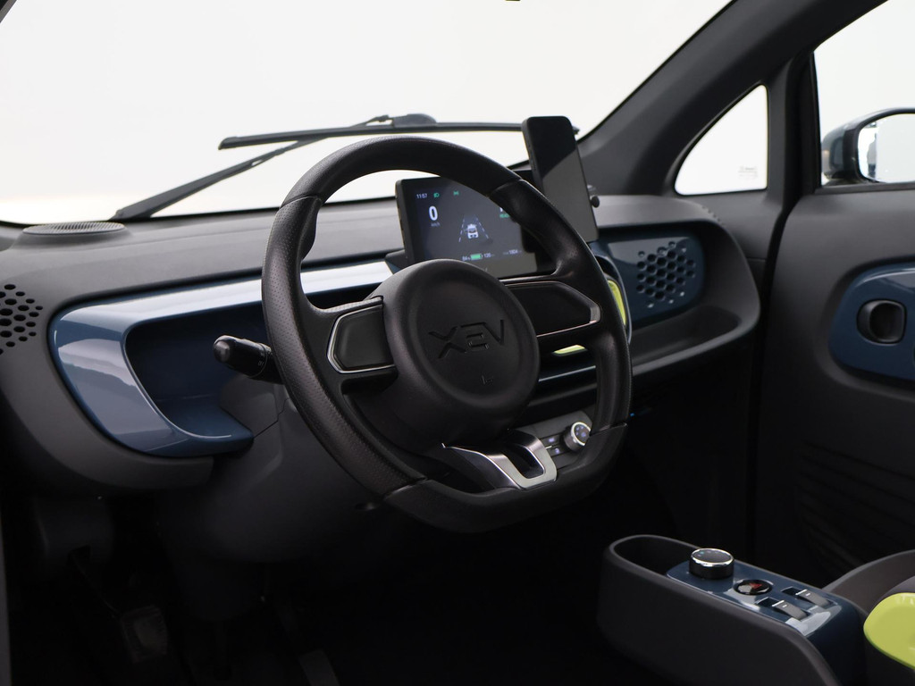 XEV Yoyo van 12-2024 met slechts 1.804 km in het Midnight Blue met Fresh Lime accenten, XEV komt uit Italië uit Venetië. Volledig elektrisch, Automaat, 153 km Actieradius, Topsnelheid 90 km/h, Slechts 8 euro wegenbelasting per kwartaal. Panoramadak, Privacy glass achter, Airco, Speakers met bluetooth verbinding, Digitale cockpit, Leder stuurwiel, Middenarmsteun, LED dagrijverlichting, LED achterlichten, USB lader, Smartphone houder, Stuurbekrachtiging, ABS, Keyless-entry, Elektrische ramen, 180 liter bagageruimte, Schijfremmen voor en achter, Telefoon op de foto's is niet inbegrepen, RDW nieuwprijs 15.990 euro.