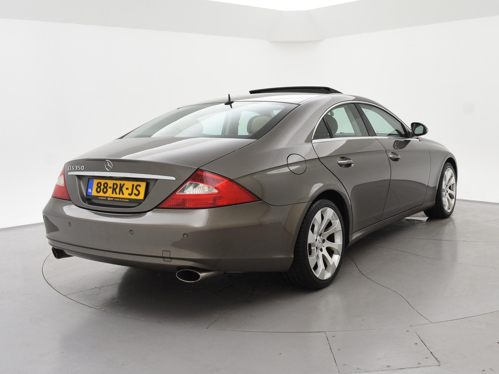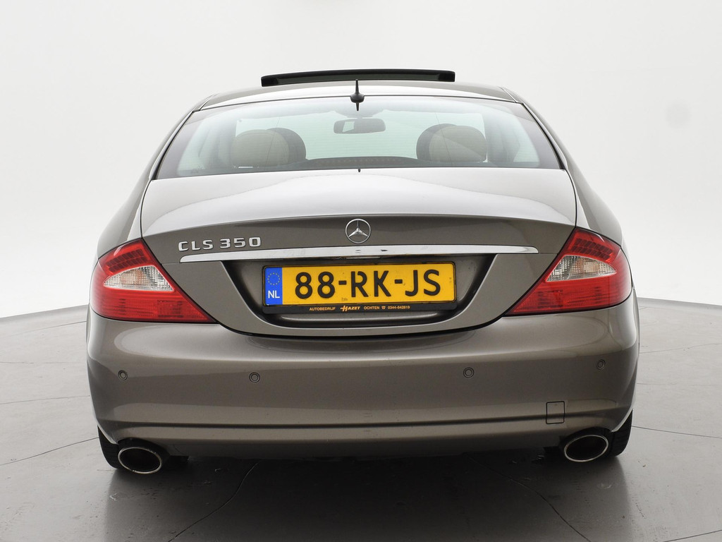 Origineel Nederlandse auto, CLS 350 V6 272 PK Automaat in het Indium Gray metallic met beige volledig leder interieur, Origineel onderhoudsboekje aanwezig, Elektrisch schuif/kanteldak, Harman/Kardon premium sound, Navigatie, Xenon verlichting, 4-zone Climate control met aparte display en bediening achterin, Cruise control, Parkeersensoren voor + achter, Buitenspiegels elektrisch inklapbaar.
