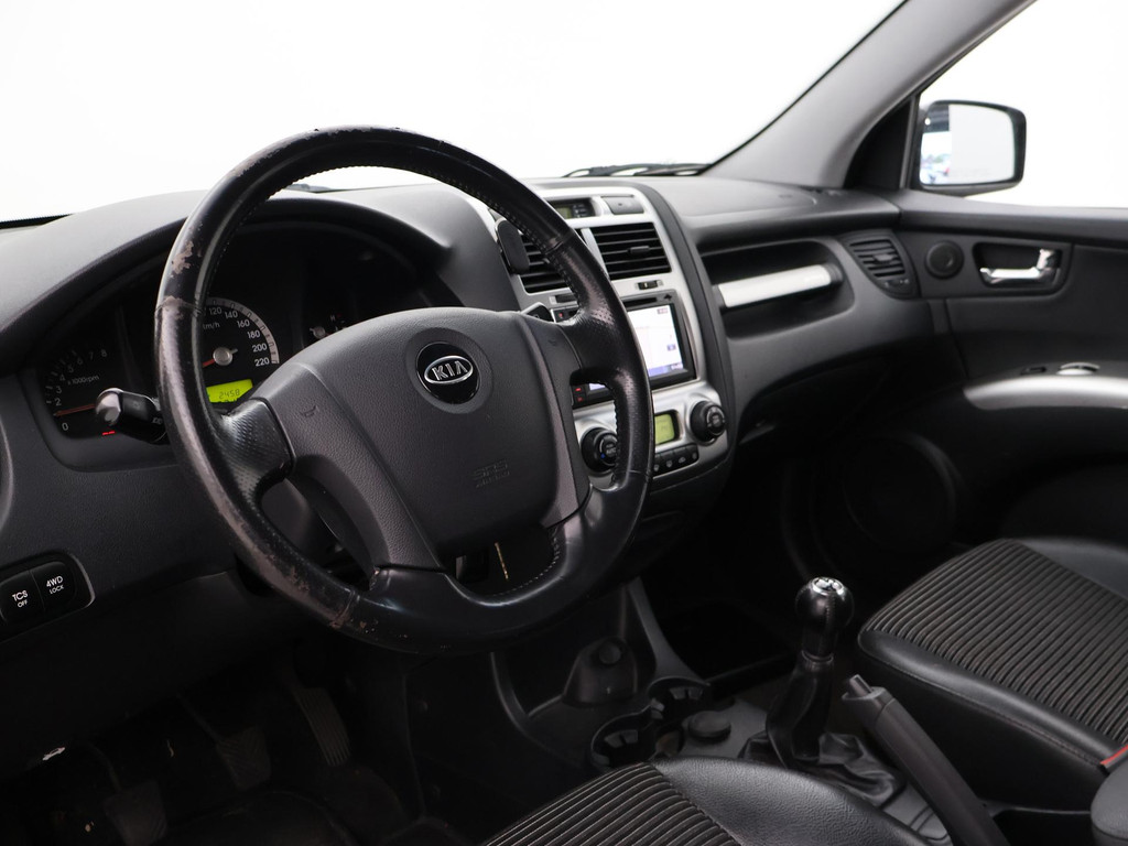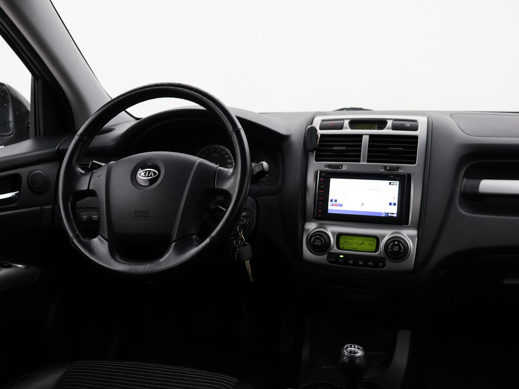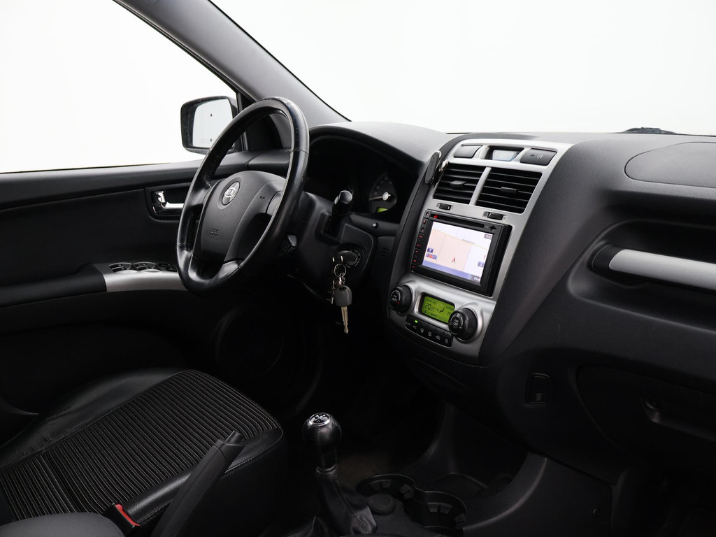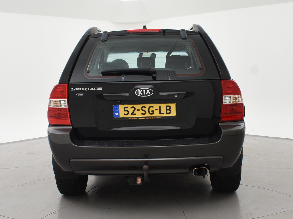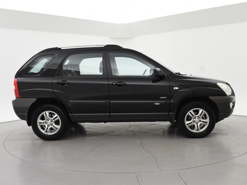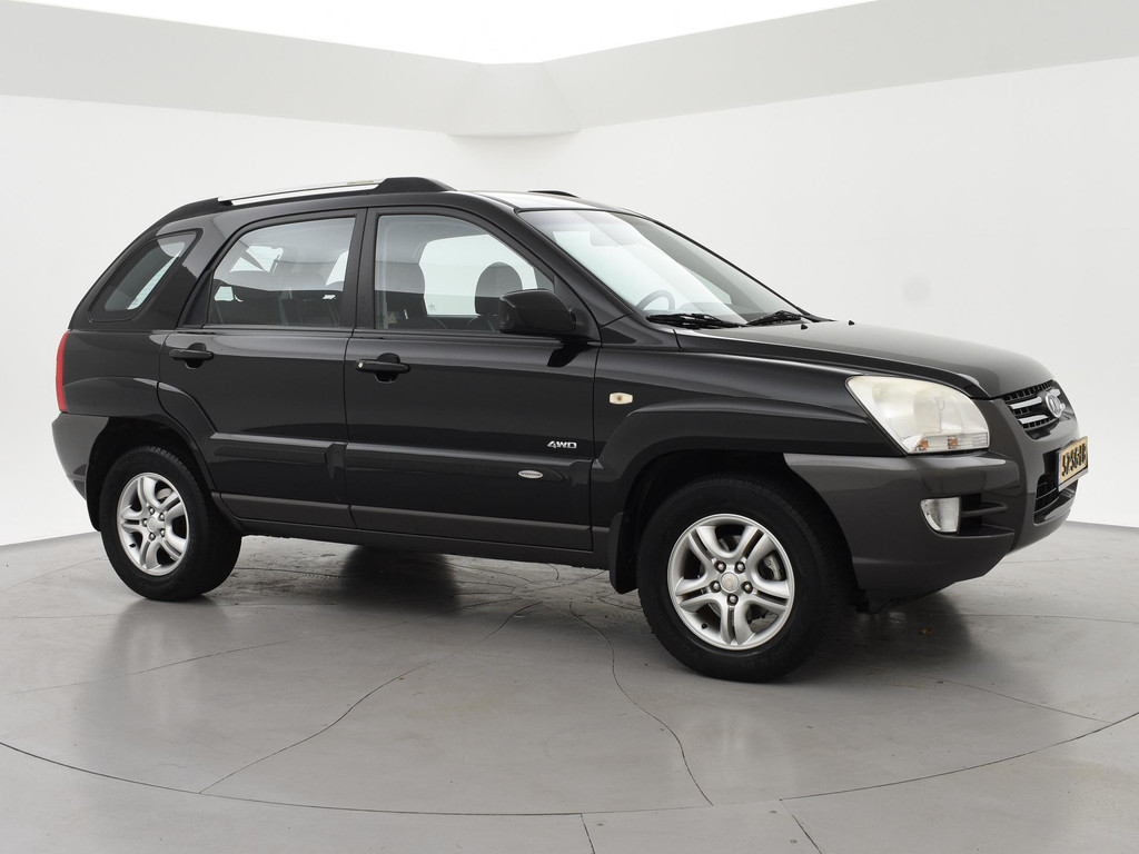 Origineel Nederlandse Sportage 2.0 CVVT 140 PK handgeschakeld 4WD vierwielaandrijving (vrij zeldzaam i.c.m. met de 2.0 4-cilinder motor), Black Cherry metallic exterieurkleur, Trekhaak met 1600 kg trekgewicht op kenteken, Climate control, Navigatie, Cruise control, Leder stuurwiel, Zwart half leder interieur.