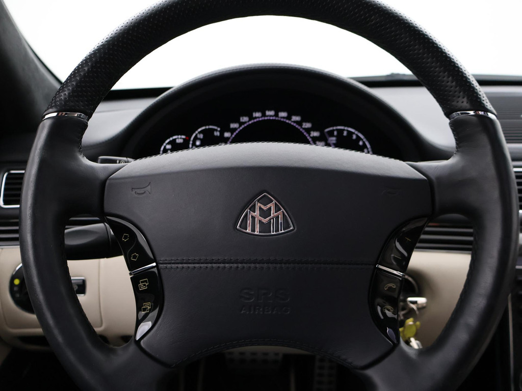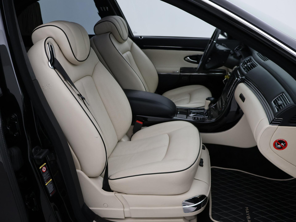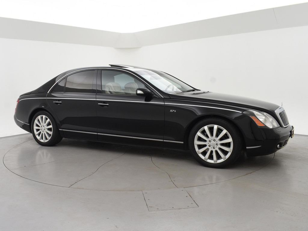 Maybach 57 6.0 V12S 612 PK Automaat, Unieke auto met een RDW Nieuwprijs van €589.600,- een ledig gewicht van 2635 kilo en een tankinhoud van maar liefst 110 liter, Eerste toelating van 02-2006 en voor die tijd extreem veel luxe, comfort en opties. Zo is de auto voorzien van onder ander: Adaptieve cruise control met regelbare afstand op de voorganger, Massagestoelen voor, Stoelverwaming en stoelventilatie voor + achter, Mediaschermen achterin, Koelkast in de middensteun achterin, Snelheidsmeter/temperatuurmeter/Maybach klok in de hemel, 20 Inch lichtmetalen velgen, Elektrisch schuif/kanteldak, Luchtvering met regelbare rijhoogte, Navigatiesysteem met kaartweergave, Multifunctioneel leder stuurwiel, 4-Zone climate control, Elektrische gordijnen achterin, Elektrische stoelverstelling met meerdere geheugenstanden, Bose premium sound, CD Wisselaar achterin, Dubbelglas, Solar roof, Zwarte alcantara hemelbekleding, Alle originele boekjes aanwezig met onderhoudshistorie uit Duitsland, Keyless entry + go, Elektrische achterklep, Maybach reparatie set, Elektrisch inklapbare buitenspiegels, Xenon verlichting, Carbon delen interieur, Elektrisch verstelbaar stuurwiel met stuurwielverwarming, Parkeersensoren voor + achter, Slechts 70.796 kilometer aantoonbaar op de teller.