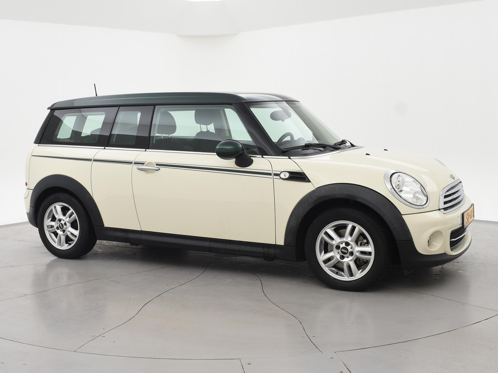 Mini Clubman 1.6 Cooper Pepper, Handgeschakeld met 6 versnellingen, Leuke uitvoering met veel groene accenten, Zo is het dak groen, de spiegels en zit er een groene stiping over de zijkant, Lichtmetalen velgen, Xenon verlichting, Airco, Start/Stop systeem, Onderhoudsboekje afgestempeld aanwezig.
