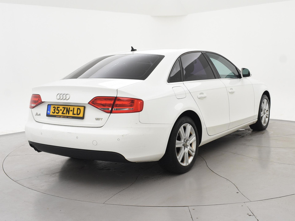 Nieuw model A4 1.8 TFSI benzine 160 PK met 6 versnellingen, Origineel Nederlandse auto in het Ibiswit met lichtgrijs interieur, Navigatie, Privacy glass, Stoelverwarming, Climate control, Parkeersensoren, Cruise control.