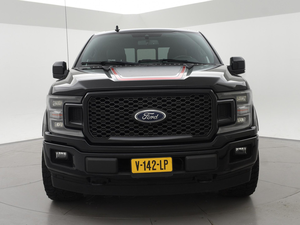 Ford F150 Lariat 5.0 V8 401 PK 4X4 Automaat met LPG 115R gasinstallatie van Prins, Dubbel cabine met 5 zitplaatsen, Zwart met rood leder sportinterieur, Panorama schuif/kanteldak, 3500 kg trekhaak, Bang & Olufsen premium sound, 360 graden surround view camerasysteem, 18 inch Zwarte velgen met all terrain banden, Apple Carplay / Android Auto appstreaming Google Maps, Flitsmeister, Whatsapp etc, Stoelverwarming voor + achterin, Stuurwielverwarming, Stoelventilatie, Hardcover over de laadruimte, Treeplanken, Full LED koplampen, LED achterlichten, Navigatie, Elektrische stoelverstelling met geheugen, Prijs is exclusief BTW.