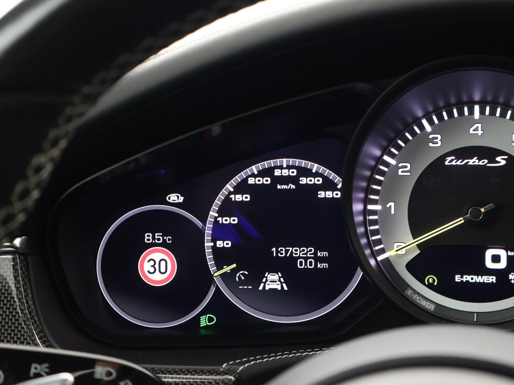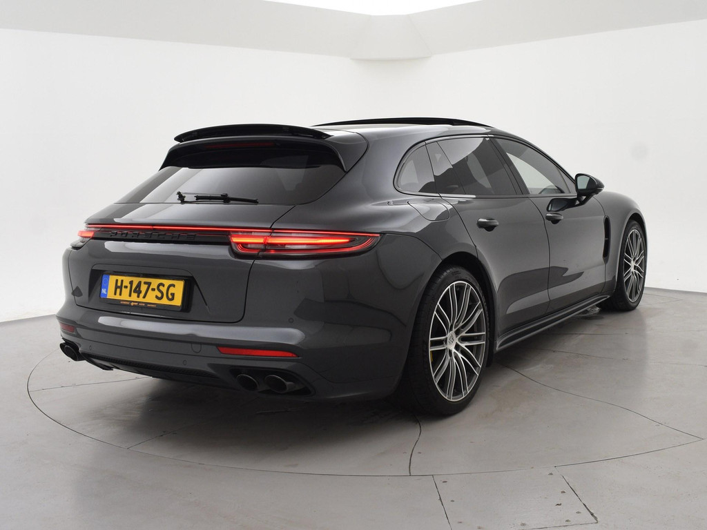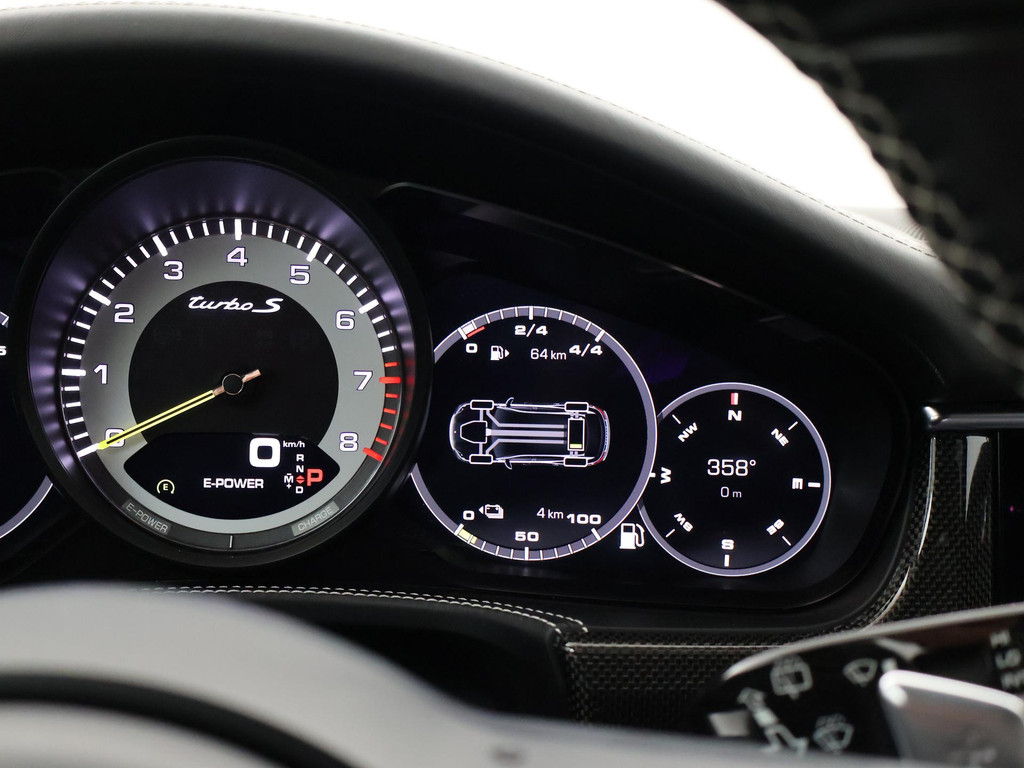 Origineel Nederlandse auto door Porsche Centrum Gelderland geleverd, RDW nieuwprijs 259.939 euro, Sport Turismo, BTW verrekenbaar, Vulkaangrijs metallic, 4.0 V8 Turbo S E-Hybrid 680 PK origineel vanaf fabriek met vierwielaandrijving, Keramische remmen Porsche Ceramic Composite Brake, Zwart volledig leder interieur: sportstoelen met 18-voudige verstelling, Alle dashboard delen van leder niet alleen het dashboard maar zelfs de stoelbehuizing, zijkant van het dashboard en verder alle delen die leder kunnen. 5-persoons uitvoering, Burmester High End audio, Stoelventilatie, Stoelverwarming voor + achter, Sportuitlaat origineel vanaf fabriek met regelbare kleppen, Luchtvering, Adaptief onderstel met regelbare schokdempers, Achterasbesturing, Panorama schuif/kanteldak, 360 graden camerasysteem, 21 inch lichtmetalen velgen, Matrix LED koplampen, 4-zone climate control, Navigatie breedbeeld + Apple Carplay en Android Auto, Head-up display, HomeLink garagedeur opener, DAB+ Digitale radio, Elektrische achterklep, Comfort access keyless, Zwarte alcantara hemelkleding, Extra isolerend dubbel glas, Verkeersbordenherkenning, Lijnassistentie, Adaptive cruise control, Dodehoek assistentie, File assisatent Privacy glass, Sport Chrono pakket, Gele remklauwen, Verlichte speakerkappen, Sluitbekrachtiging Soft Close portieren, Carbon interieur inleg.