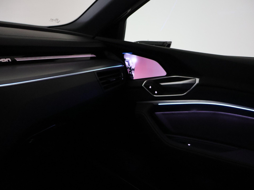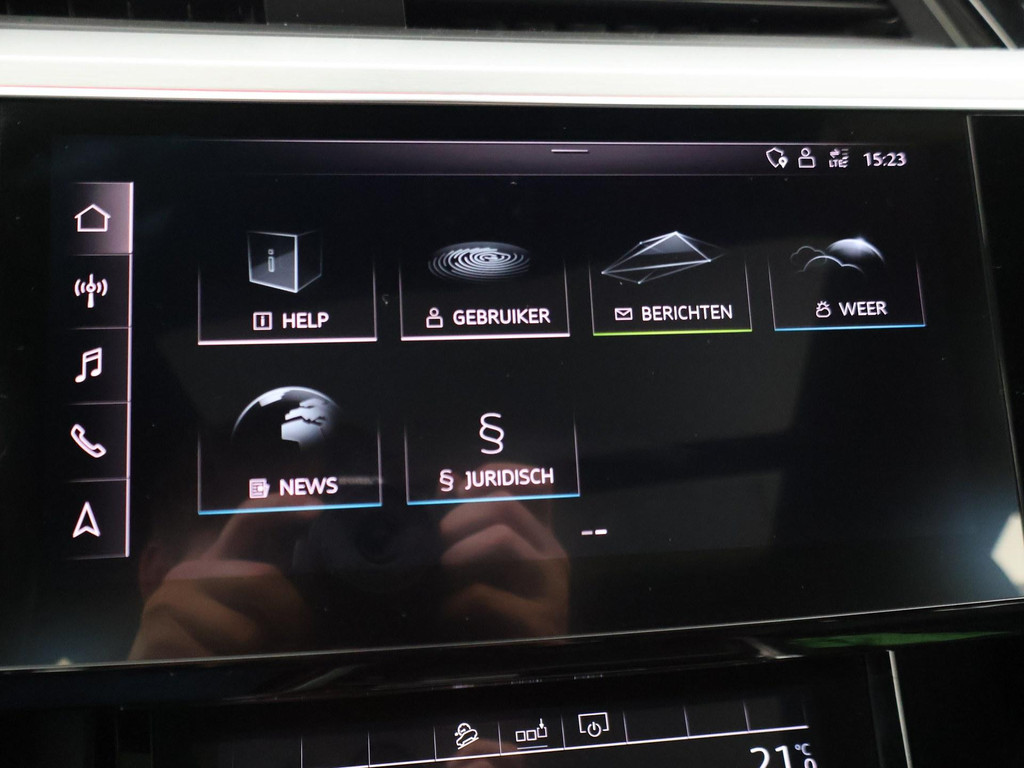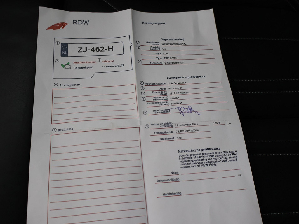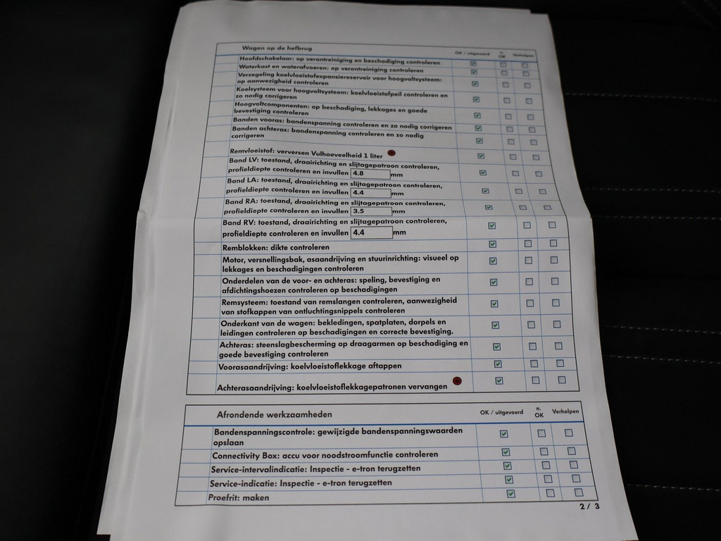 Edition One uitvoering - de introductie uitvoering van de E-Tron met zeer veel extra's en die het meest de introductiekleur Antiguablauw metallic uitgegeven is met oranje remklauwen origineel vanaf fabriek. E-Tron 55 408 PK Quattro, BTW verrekenbaar, prijs is inclusief BTW. Zwart volledig leder sportinterieur met stoelverwarming, 4-Corner Luchtvering met regelbare rijhoogte, Sfeerverlichting interieur met verschillende kleuren, Bang & Olufson premium sound, Panorama schuif/kanteldak, 360 graden surround view camerasysteem, Navigatie, Adaptive cruise control, Cameraspiegels, Parkeersensoren voor en achter, Elektrische stoelverstelling, Zwarte hemelbekleding, Keyless-entry en keyless-drive, Elektrische achterklep, Full LED koplampen, LED achterlichten, Chromen raamlijsten en dakrailing, Apple Carplay / Android Auto, 4-zone climate control, Elektronisch kinderslot. Bijzonderheden: Deze auto kan wel gewoon aan de laadpaal laden, maar niet aan de snelladers zoals Fastned. Dit komt door een isolatiestoring die het snelladen beveiligd. De oplossing hiervoor is ons niet bekend, wij verkopen de auto in de huidige staat.