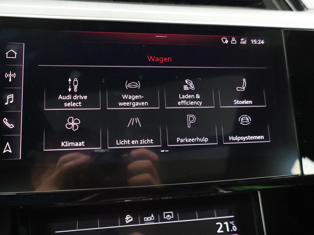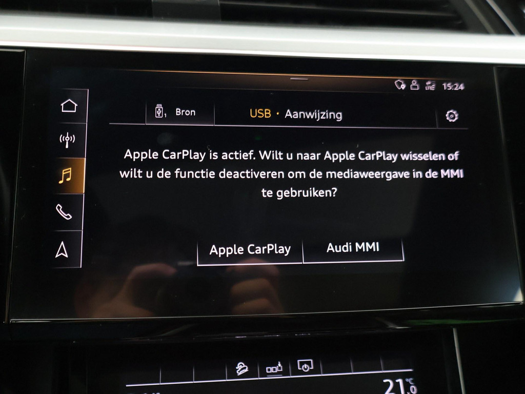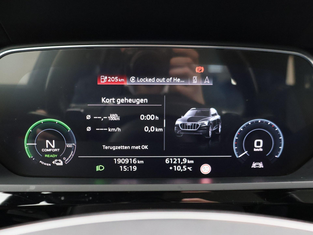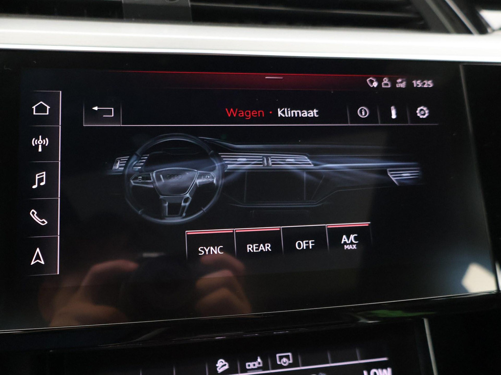 Edition One uitvoering - de introductie uitvoering van de E-Tron met zeer veel extra's en die het meest de introductiekleur Antiguablauw metallic uitgegeven is met oranje remklauwen origineel vanaf fabriek. E-Tron 55 408 PK Quattro, BTW verrekenbaar, prijs is inclusief BTW. Zwart volledig leder sportinterieur met stoelverwarming, 4-Corner Luchtvering met regelbare rijhoogte, Sfeerverlichting interieur met verschillende kleuren, Bang & Olufson premium sound, Panorama schuif/kanteldak, 360 graden surround view camerasysteem, Navigatie, Adaptive cruise control, Cameraspiegels, Parkeersensoren voor en achter, Elektrische stoelverstelling, Zwarte hemelbekleding, Keyless-entry en keyless-drive, Elektrische achterklep, Full LED koplampen, LED achterlichten, Chromen raamlijsten en dakrailing, Apple Carplay / Android Auto, 4-zone climate control, Elektronisch kinderslot. Bijzonderheden: Deze auto kan wel gewoon aan de laadpaal laden, maar niet aan de snelladers zoals Fastned. Dit komt door een isolatiestoring die het snelladen beveiligd. De oplossing hiervoor is ons niet bekend, wij verkopen de auto in de huidige staat.