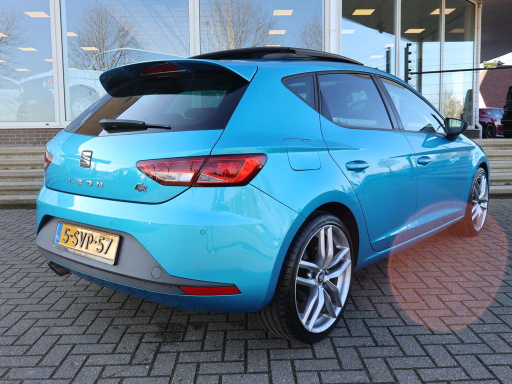 Origineel Nederlandse auto van 30-12-2013, Super leuke, mooie en volle Seat Leon 1.4 TSI FR 140 PK Business uitvoering, Alor Blue metallic exterieur, Volledige onderhoudshistorie aanwezig, 19 Inch lichtmetalen velgen, Elektrisch panorama-dak, Cruise control, Navigatiesysteem met kaartweergave, Bluetooth telefoonverbinding met audiostreaming, Climate control, Parkeersensoren voor + achter met schermweergave, Elektrische ramen voor + achter.