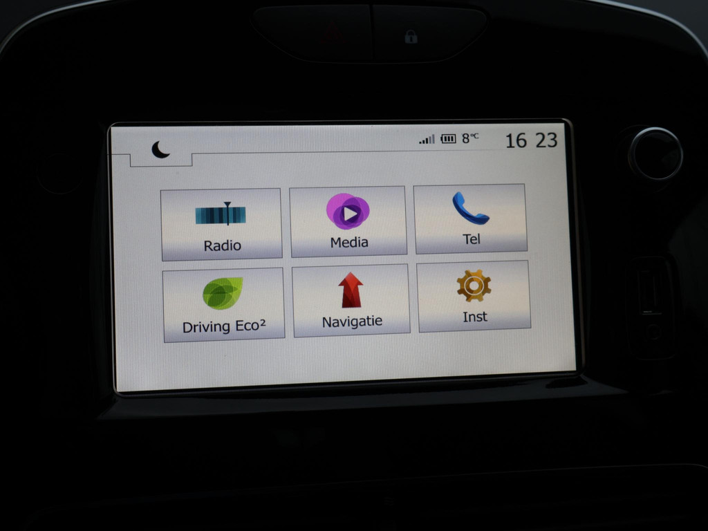 Origineel Nederlandse Renault Clio, 0.9 TCe Limited uitvoering, Navigatiesysteem met kaartweergave, Cruise control, Keyless entry + go, Airco, Bluetooth telefoonverbinding met audiostreaming, Lichtmetalen velgen, Start/stop systeem.