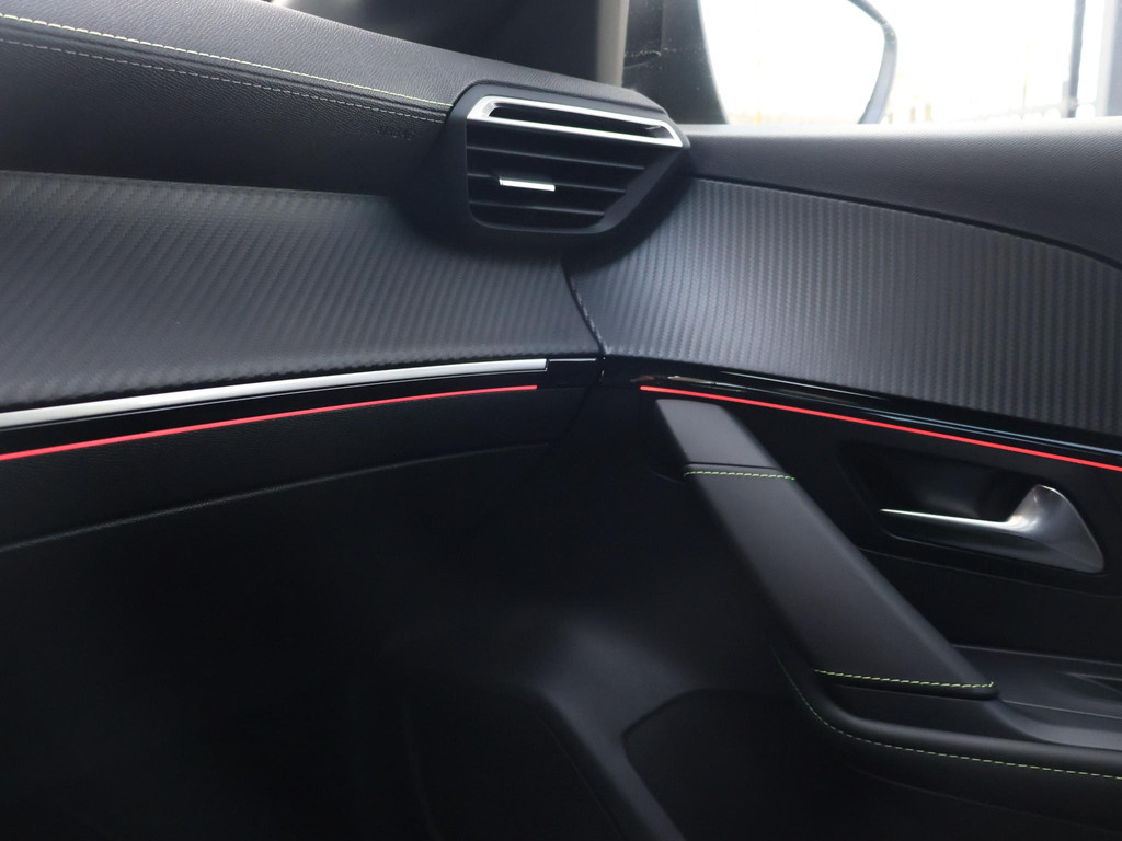 1.2 Hybrid GT-Line 145 PK Automaat, 3 Dimensionale cockpit met navigatieweergave, Sfeerverlichting interieur met verschillende kleuren, Cruise control, Apple carplay met verschillende apps waaronder: Spotify, Flitsmeister en Whatsapp, Bluetooth telefoonverbinding met audiostreaming, Verkeersbordenherkenning, Navigatiesysteem met kaartweergave, Lane-keeping assist, Full Led koplampen, LED achterlichten, LED dagrijverlichting, Multifunctioneel leder stuurwiel met F1 schakelflippers, Sportstoelen, Lichtmetalen velgen, Privacy glass, Keyless entry + Go, Diamond grill, Achteruitrijcamera, Start/stop systeem, Carbon dashboardinleg, Climate control, Peugeot Drive Mode, Driver alert, Draadloze telefoonlader.