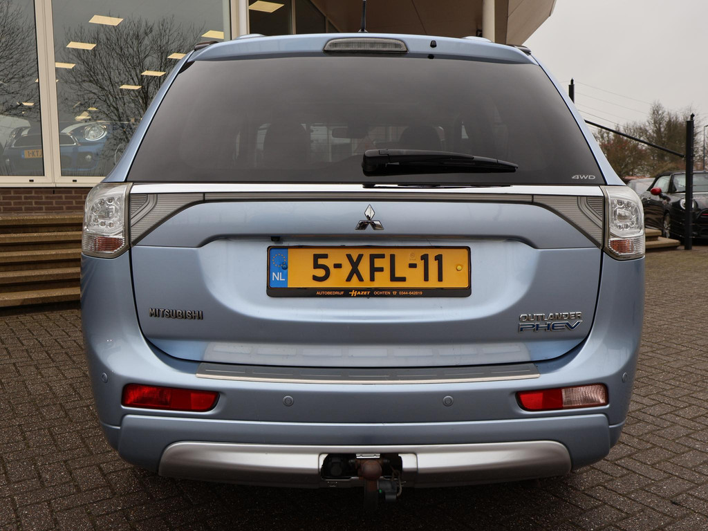 Outlander Plug-in hybride van 07-2014, Instyle+ uitvoering met Zwart volledig leder interieur met stoelverwarming en elektrische stoelverstelling, Adaptive cruise control, Elektrisch schuif/kanteldak, Trekhaak, Privacy glass, Elektrische achterklep, Climate control, Bluetooth telefoonverbinding met audiostreaming.