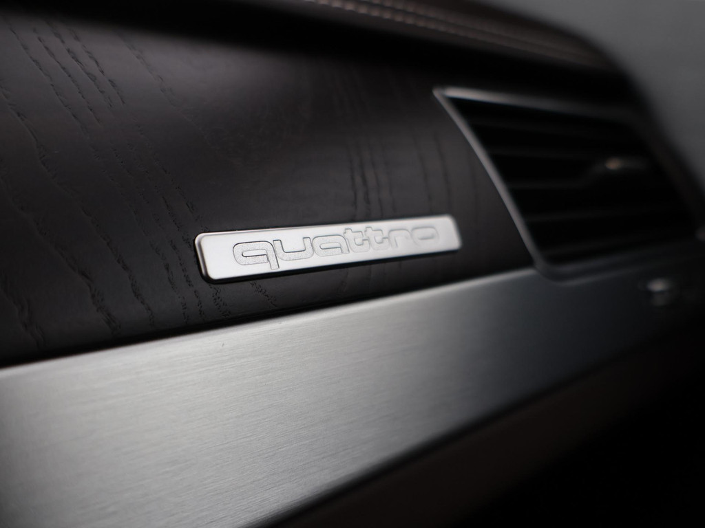 Super zeldzame kleurstelling: Havana black metallic / Havannaschwarz metallic wat zeer donkerbruin metallic is met Audi Design Selection leder exclusief in Balao bruin donkerbruin leder met beige stiksel, Tevens leder dashboard en deurpanelen in donkerbruin met beige stiksel, Donkerbruine vloerbedekking en vloermatten, 3.0 TDI V6 262 PK Quattro Automaat met slechts 129.361 km, Complete uitvoering met Schuif/kanteldak, Elektrisch wegklapbare trekhaak, Head-up display, Rondom zicht camera, Nachtzicht assistent, Massagestoelen, Stoelventilatie, Stoelverwarming, Dubbel glas, 5-persoons uitvoering met neerklapbare armsteun met stoelverwarming en climate control bediening voor achterin, Adaptive cruise control, Elektrische achterklep, LED sfeerverlichting interieur, Luchtvering.