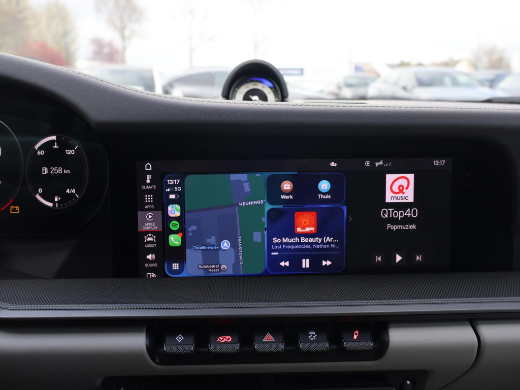 Origineel Nederlandse 992 911 Targa 3.0 4S 450 PK PDK automaat in het Carrarawit metallic met Leisteen Grijs met Krijt leder interieur, Vierwielaandrijving, Slechts 17.981 km gereden, Sportuitlaat origineel vanaf fabriek, 360 graden camerasysteem, SportDesign bumpers met afwerking in hoogglans zwart, Bose premium sound, Sport Chronopakket, Lederen interieurdelen, Sfeerverlichting interieur, 20 inch lichtmetalen velgen breedset (305 achter, 245 voor), Verwarmd stuurwiel, Rode remklauwen, Donker glas achter, Full LED koplampen, Draadloze Apple Carplay / Android Auto appstreaming Google Maps, Flitsmeister, Whatsapp etc, DAB+ Digitale radio, PASM adaptief onderstel, Cruise control, Deels digitale cockpit met navigatie kaartweergave, Navigatie breedbeeld touch-screen, Stoelverwarming, Elektrische stoelverstelling met geheugen, Parkeersensoren, Climate control, Elektrische spoiler, Porsche projectie op de straat, Zwart/grijs logo voor.