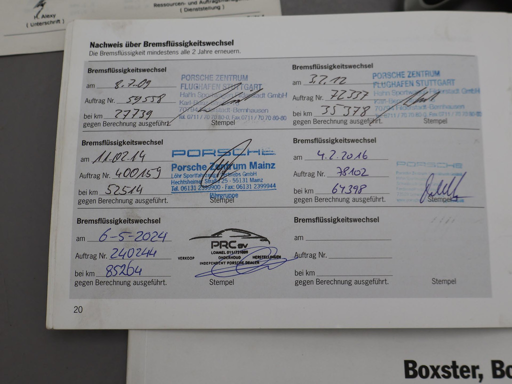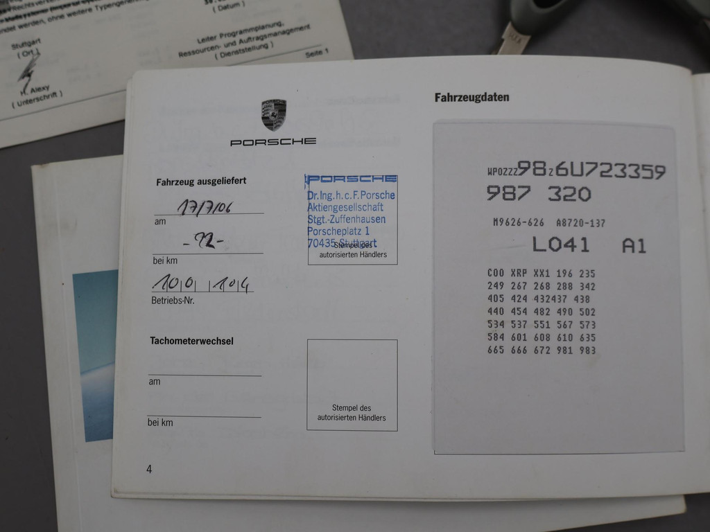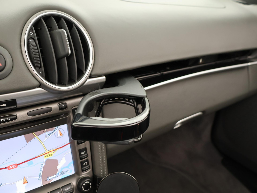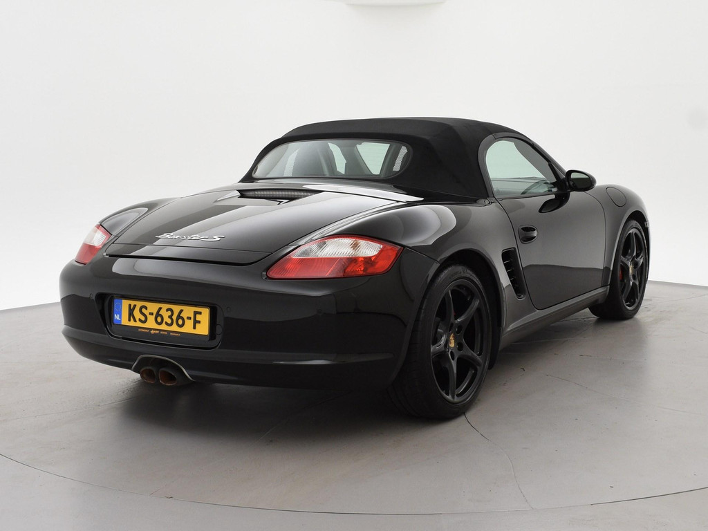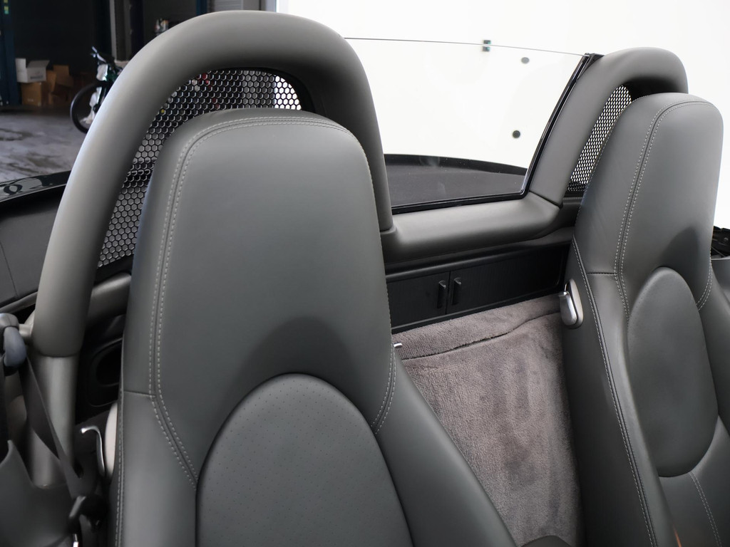 Boxter S met de 3.2 280 PK motor, Tiptronic automaat, Originele boekjes en complete onderhoudshistorie aanwezig, Zwart met grijs volledig leder interieur, Elektrische stoelverstelling met geheugen, Stoelverwarming, Navigatie, Bi-Xenon koplampen, Hoogglans zwarte 19 inch lichtmetalen velgen, Rode remklauwen, Cruise control, Climate control, Elektrische achterspoiler, Zij-airbags, Lederen afwerking in de deurpanelen en middentunnel, Lederen afwerking rondom de tellers, Witte tellerplaten, Boardcomputer, Zwarte elektrische softtop cabriokap.