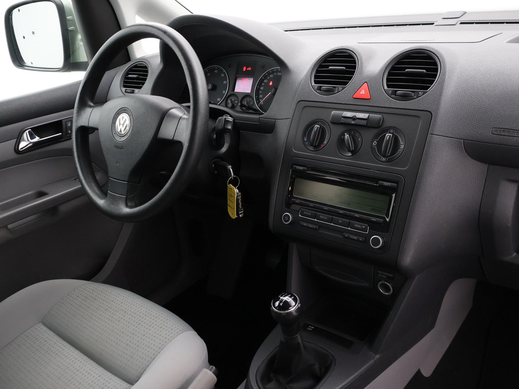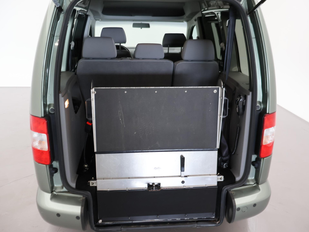Caddy 5-persoons geel kenteken 1.6 benzine 102 PK handgeschakeld in het Fresco Groen metallic, 5 zitplaatsen + rolstoelplaats met goedgekeurde rolstoel ombouw op kenteken, Airco, Privacy glass extra getint glas achter, Mistlampen, Radio/CD Volkswagen, Bumpers en buitenspiegels in carrosseriekleur, Onderhoudsboekje afgestempeld aanwezig, Origineel Nederlandse auto met slechts 128.767 km.
