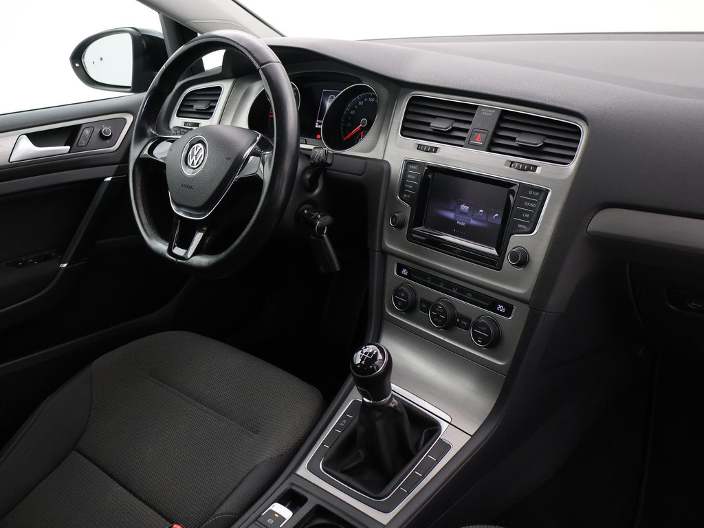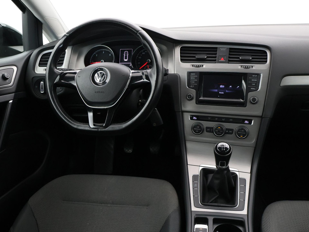 Origineel Nederlandse Golf 7 1.6 TDI BlueMotion Euro 5 in het Deep Black Pearl, Wegklapbare trekhaak origineel vanaf fabriek, Climate control, Cruise control, Radio, Dakrailing, Slot achterklep is niet in orde, klep sluit niet altijd goed.